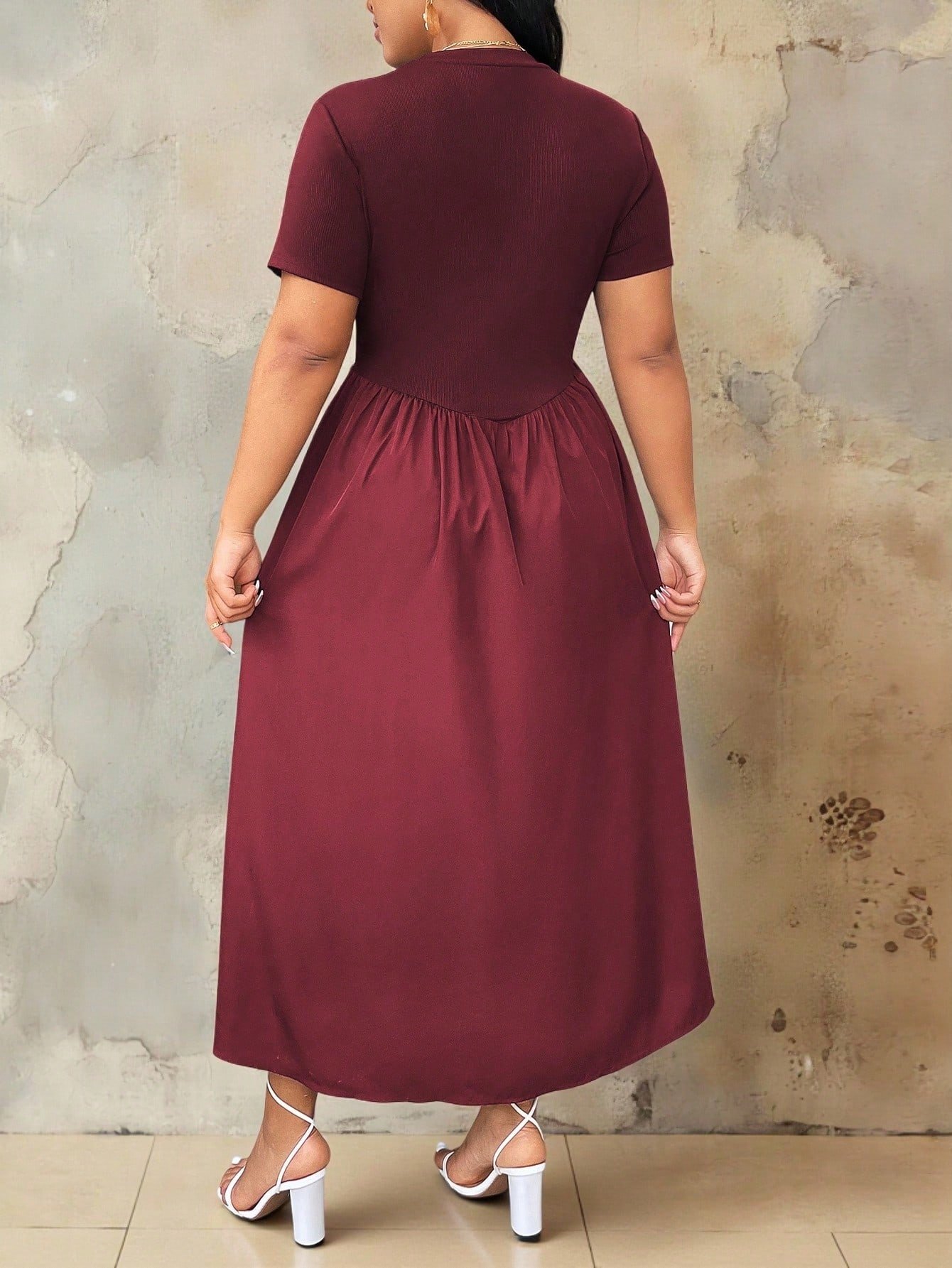 Robe élégante avec blocs de couleurs, manches lanternes à col en V profond et ourlet sirène