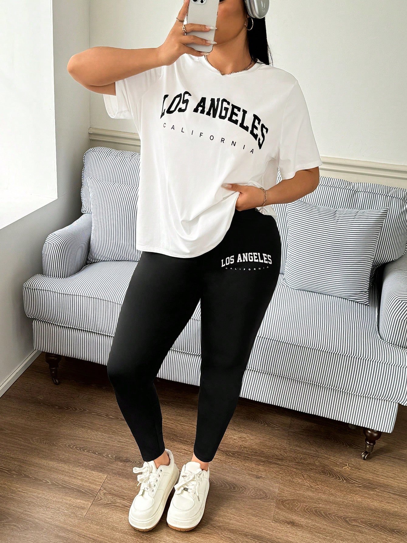 2 pièces Ensemble : T-shirt à imprimé lettre et leggings skinny,