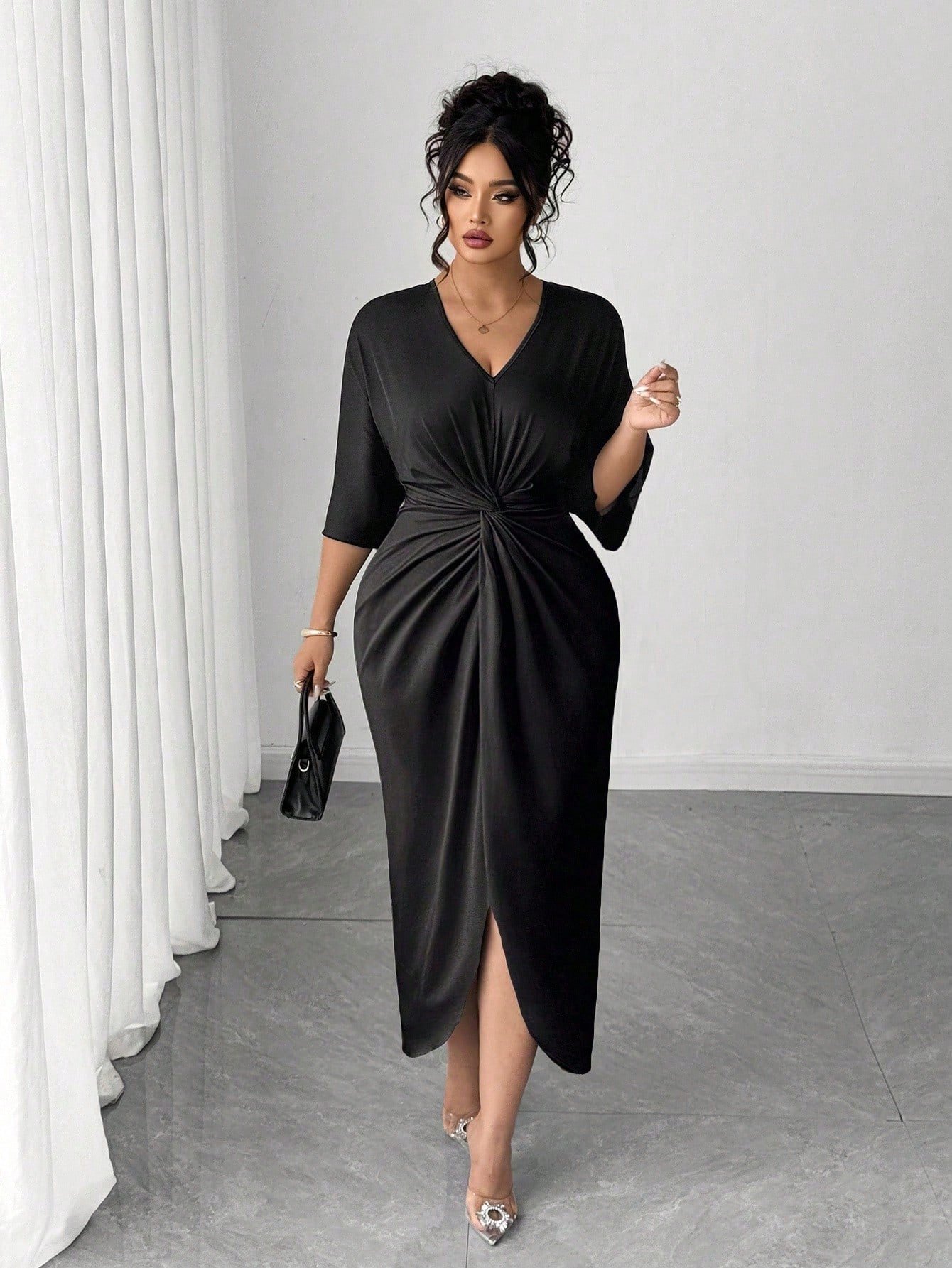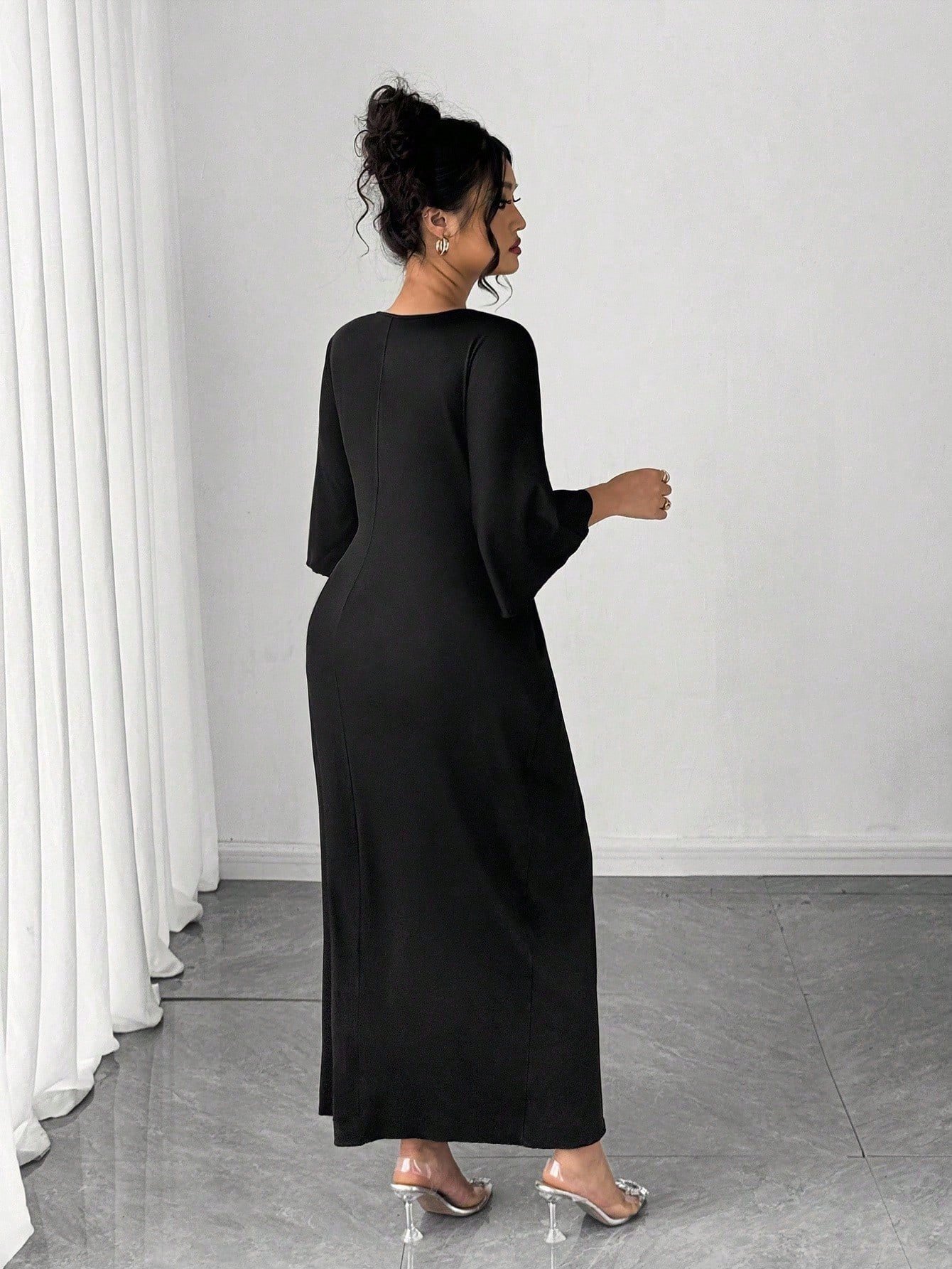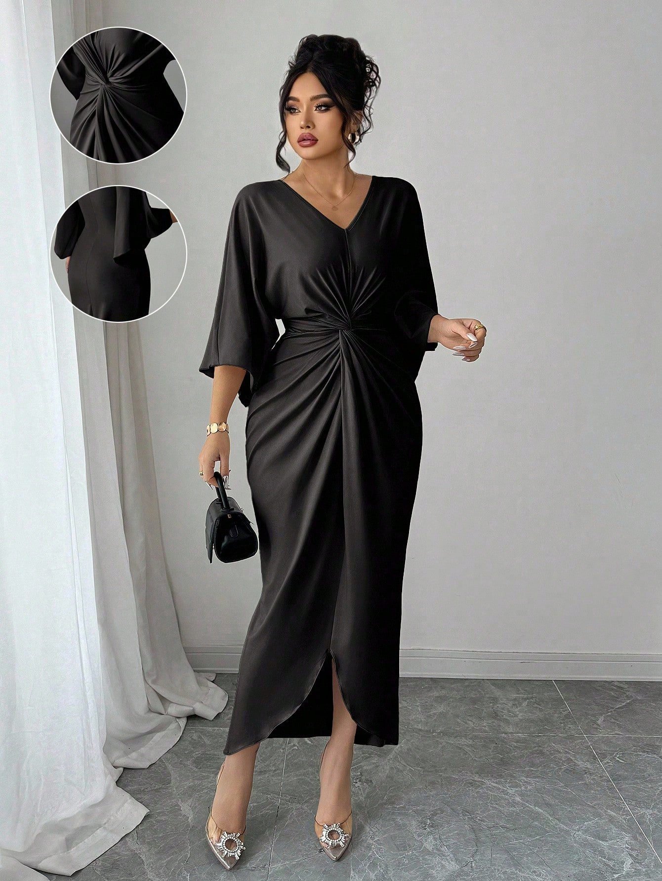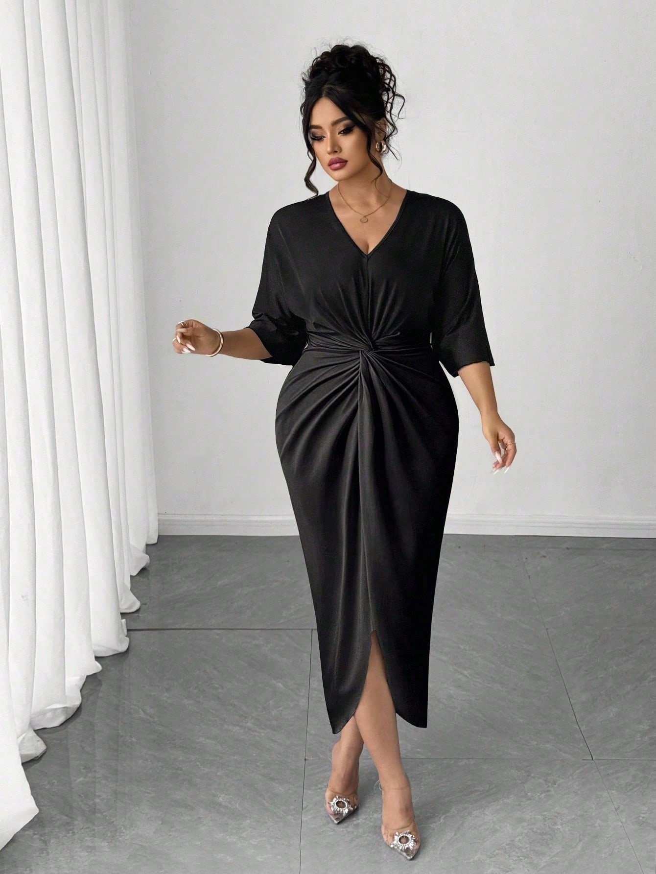 Robe moulante à taille cintrée et col en V