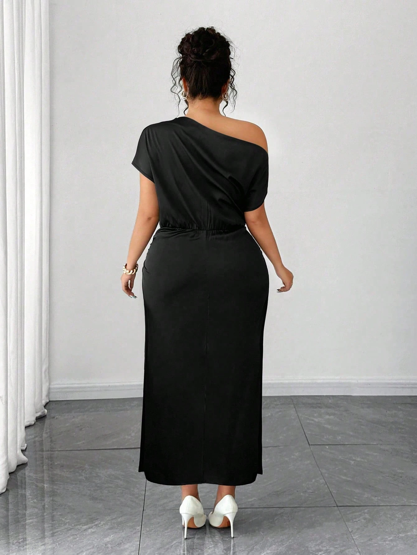 Robe fourreau asymétrique à épaules dénudées