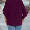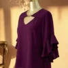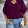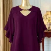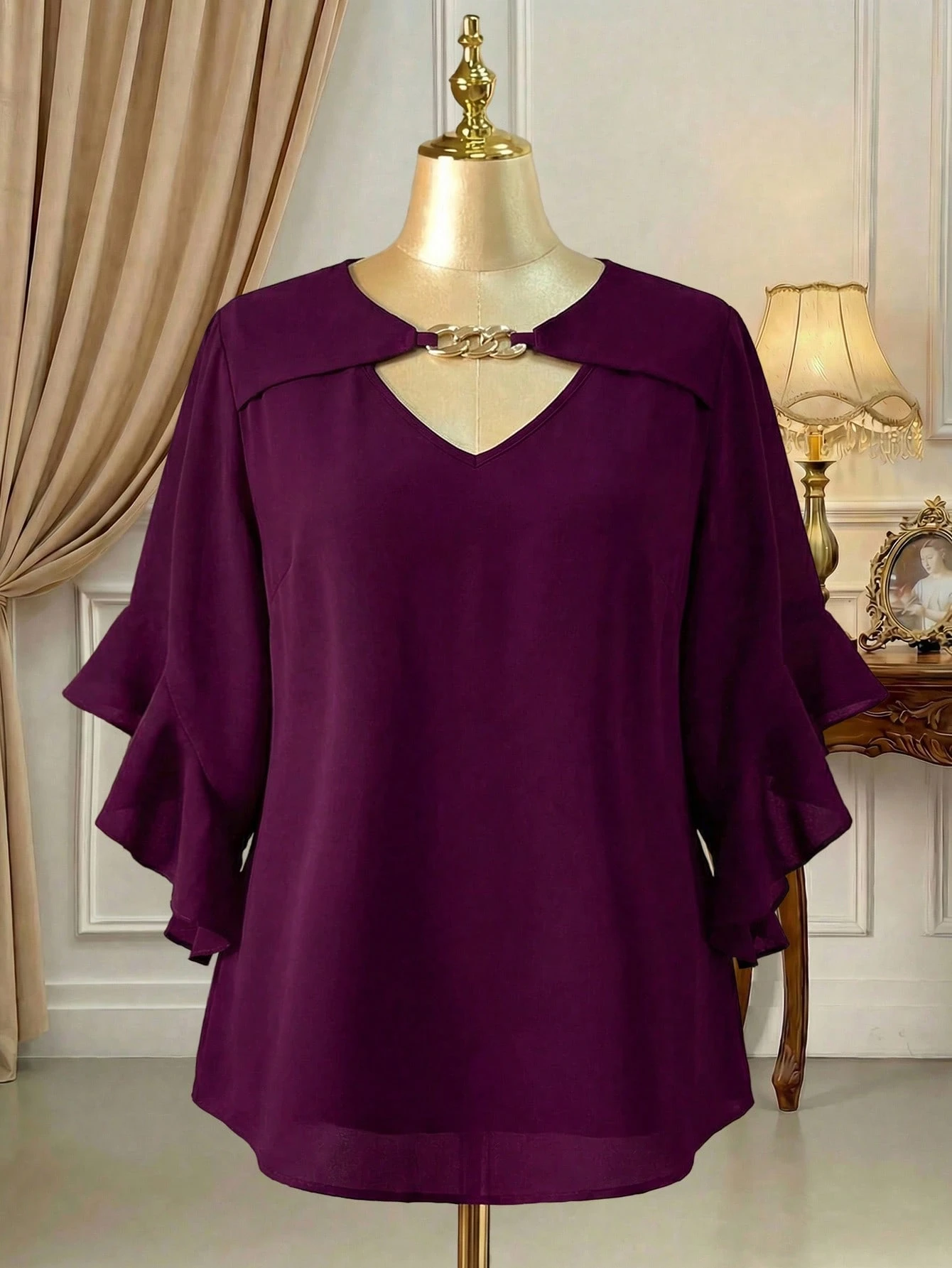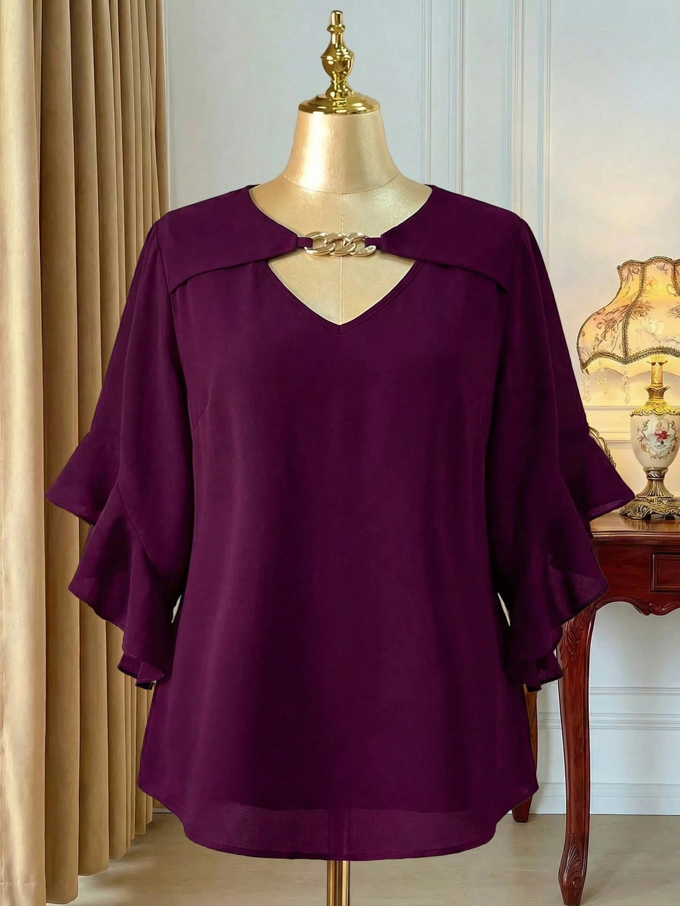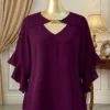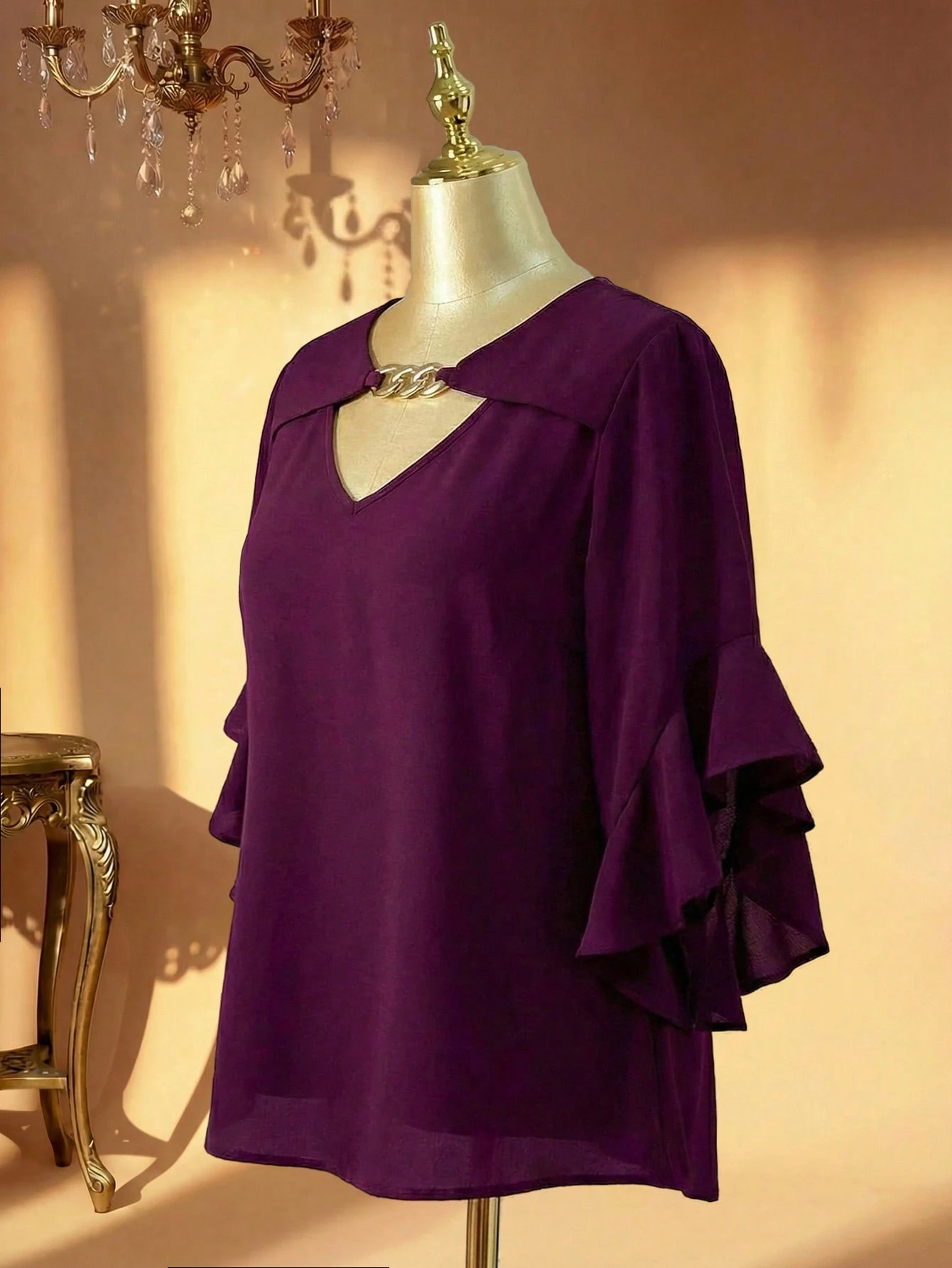Blouse unie avec col évidé et volant aux poignets