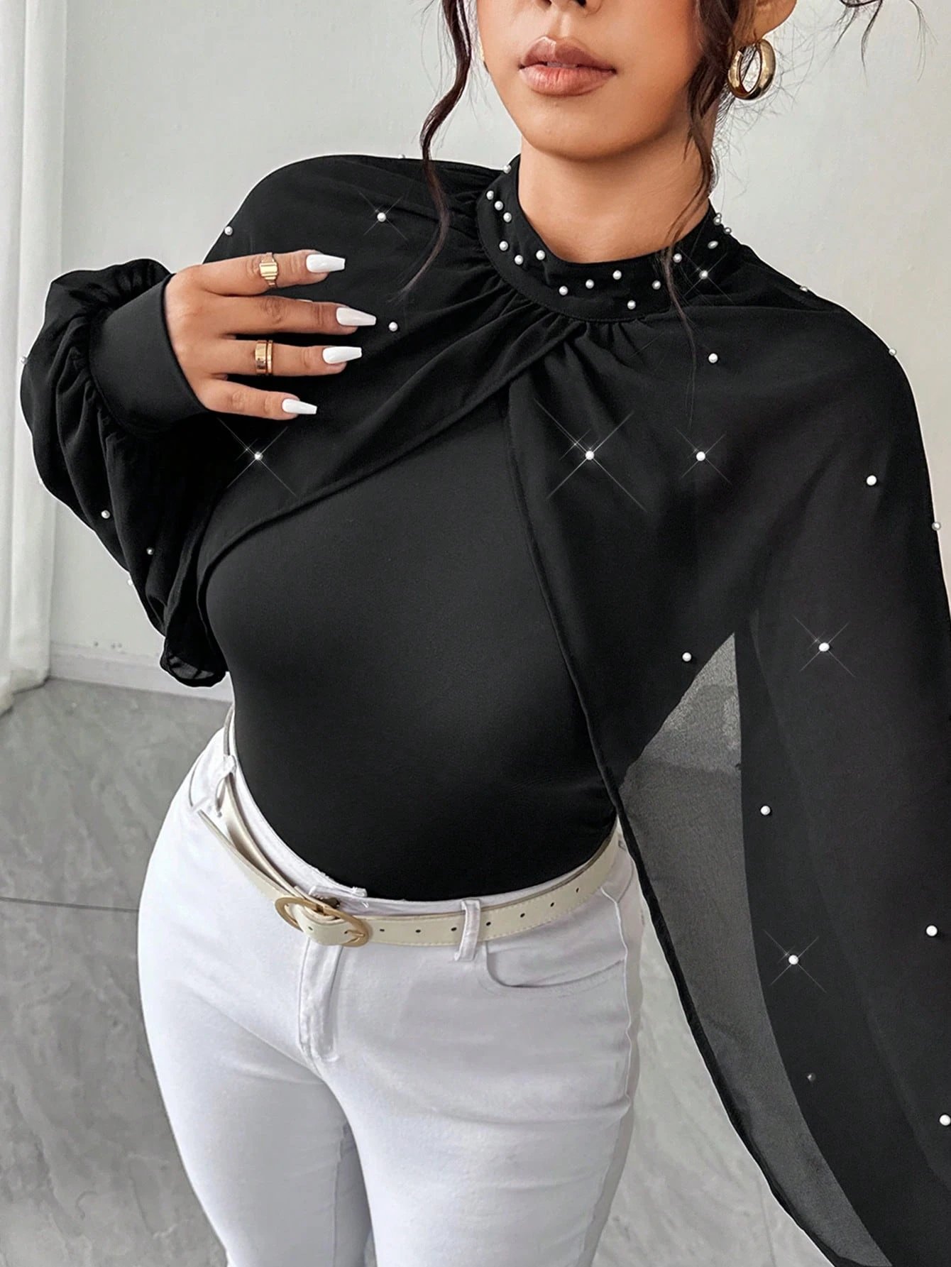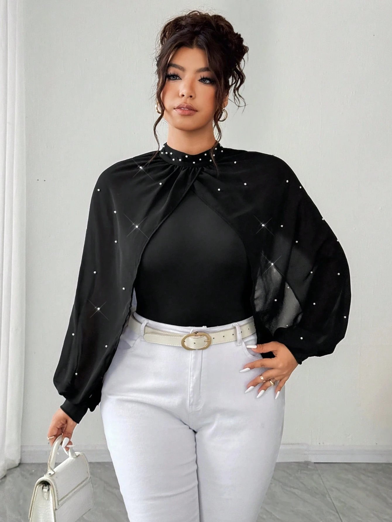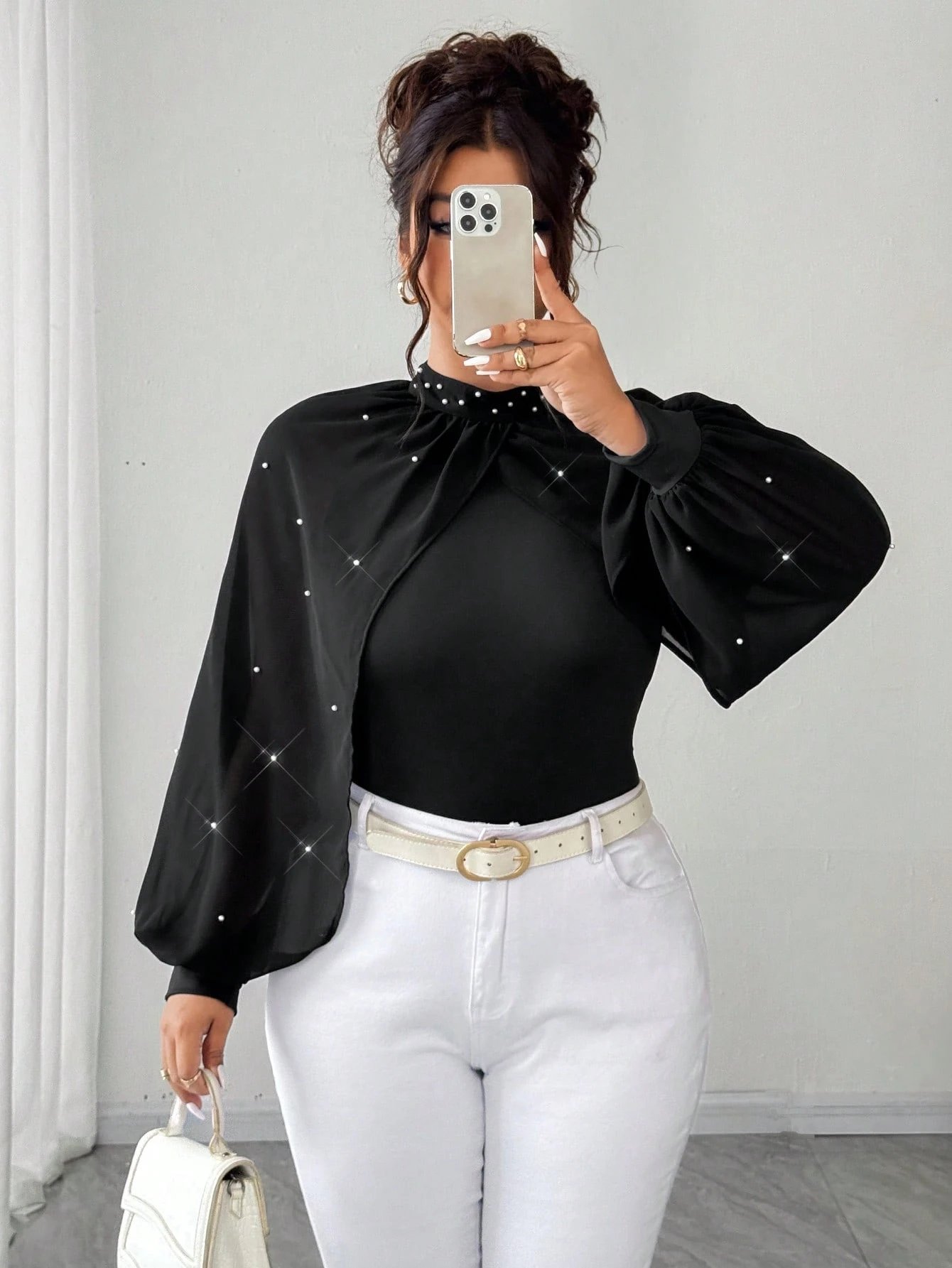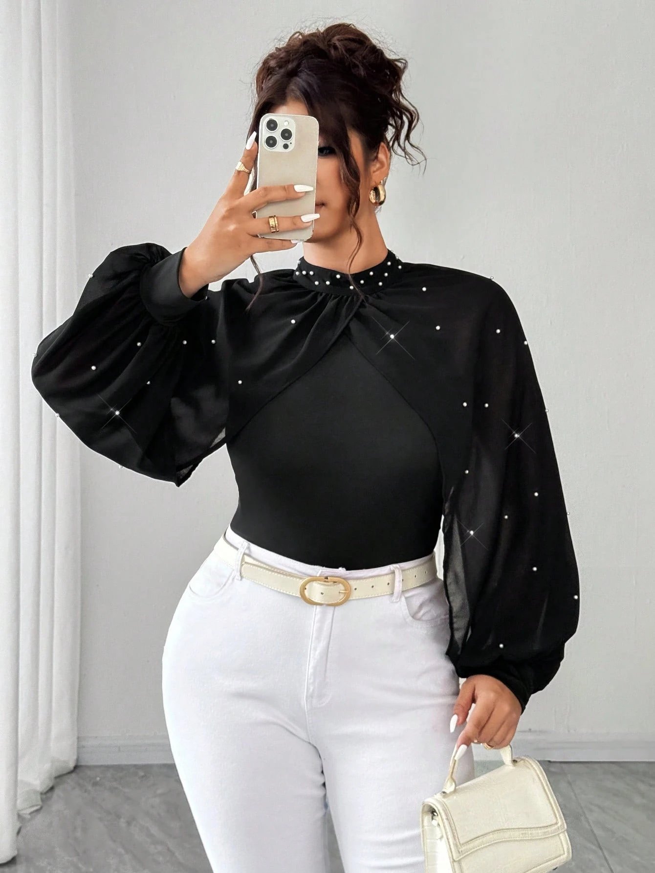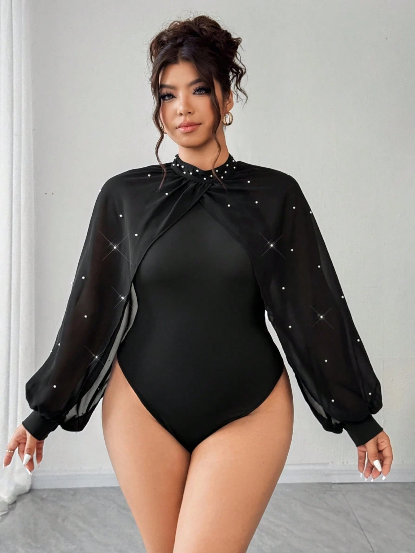 Body avec manches bouffantes en mousseline de soie