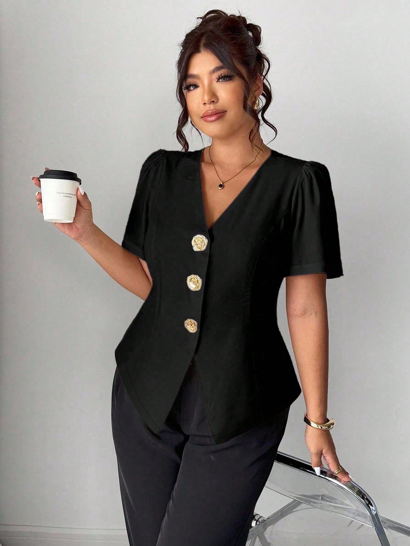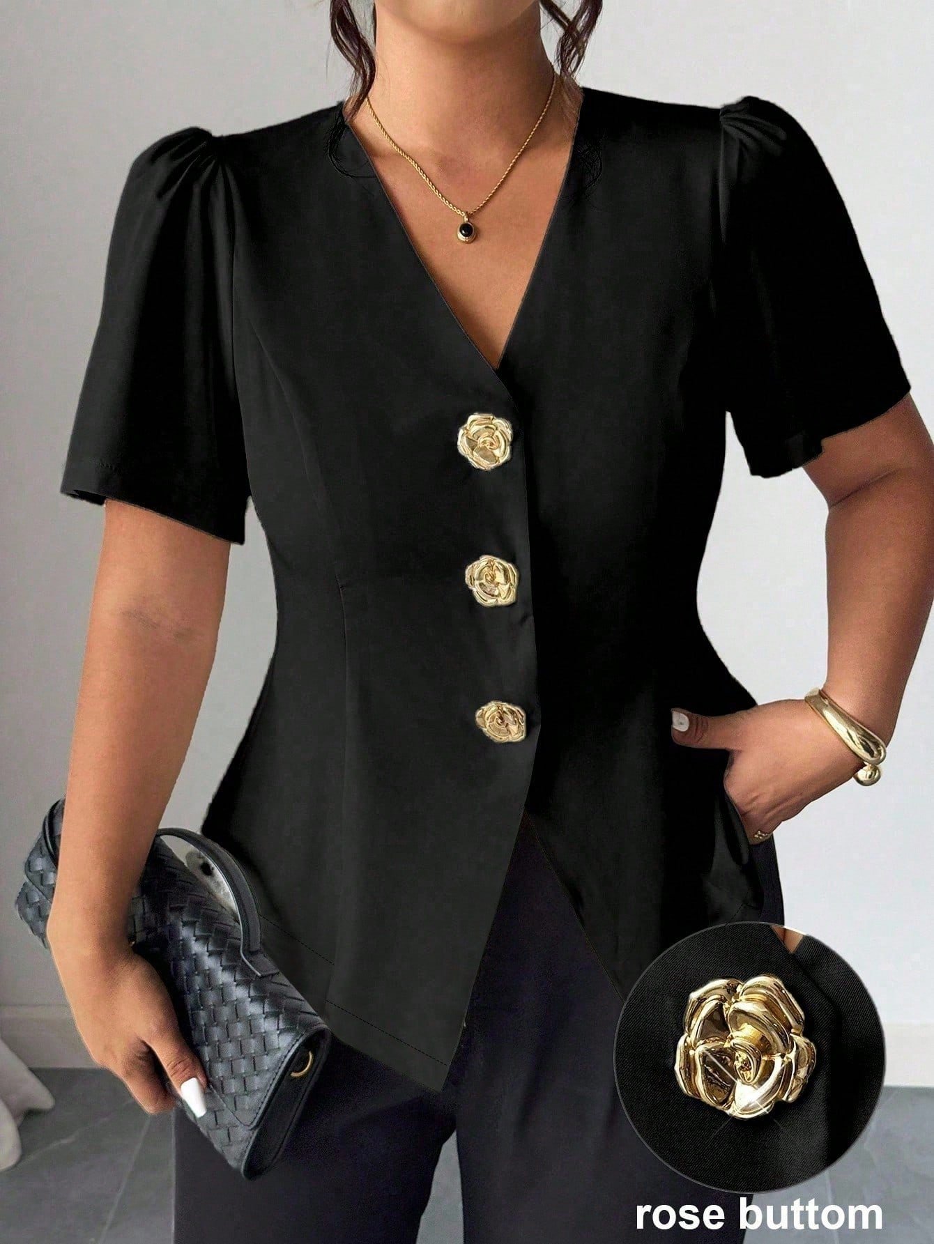 Cardigan chemise décoratif avec boutons roses