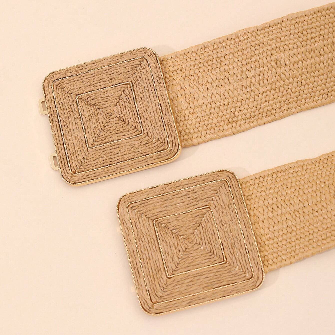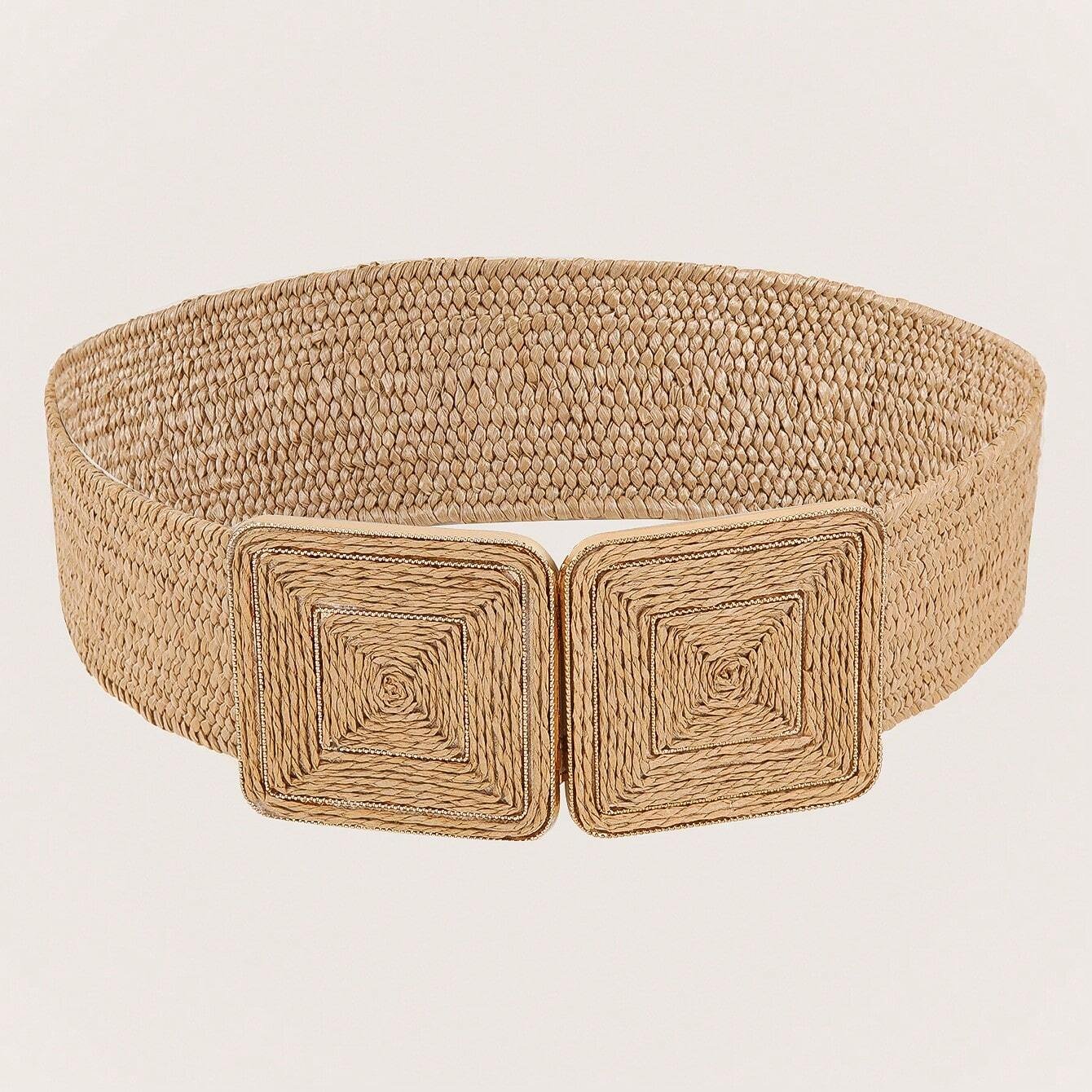 Ceinture carrée en rotin tressé couleur kaki