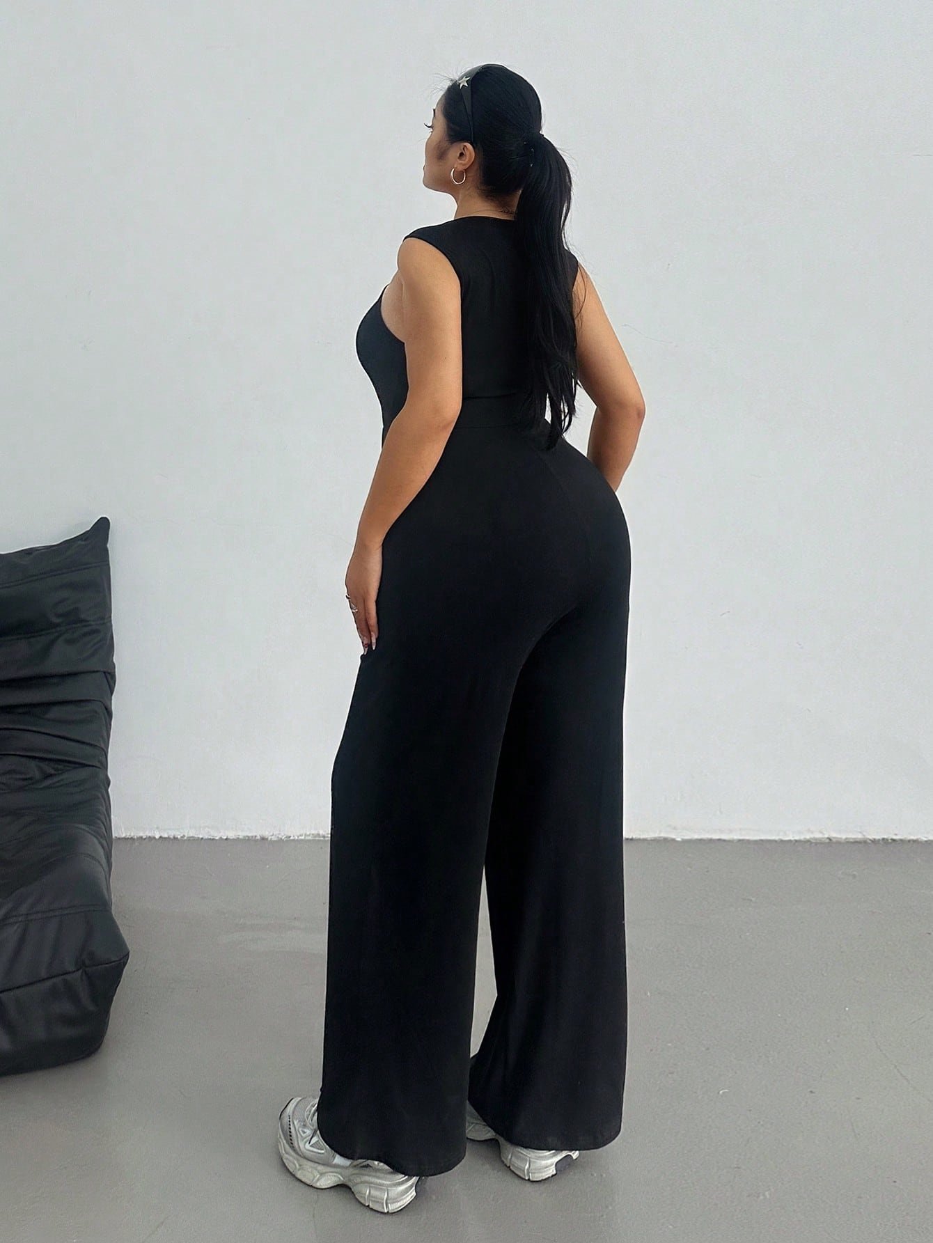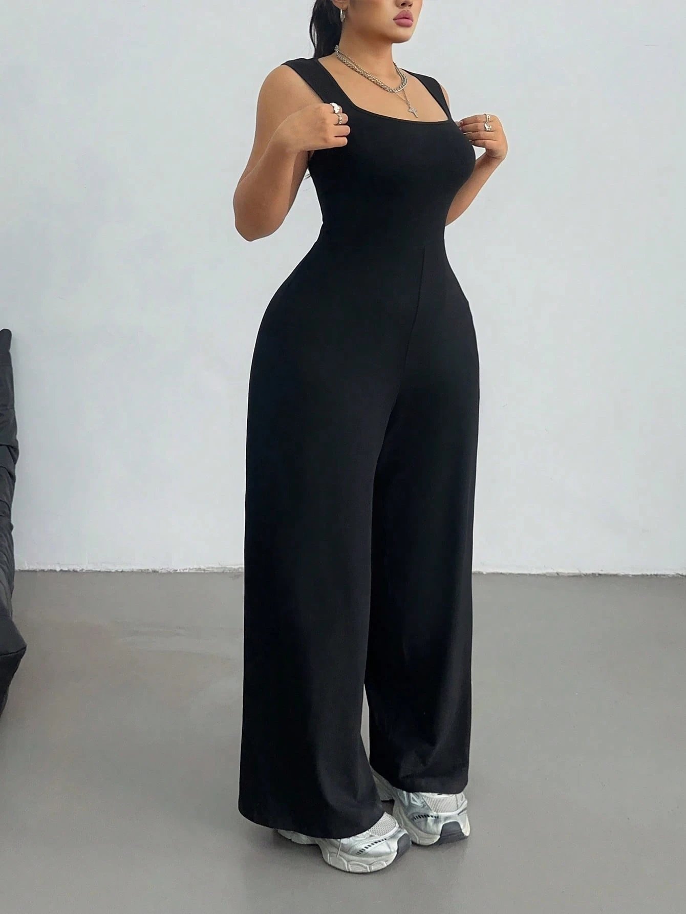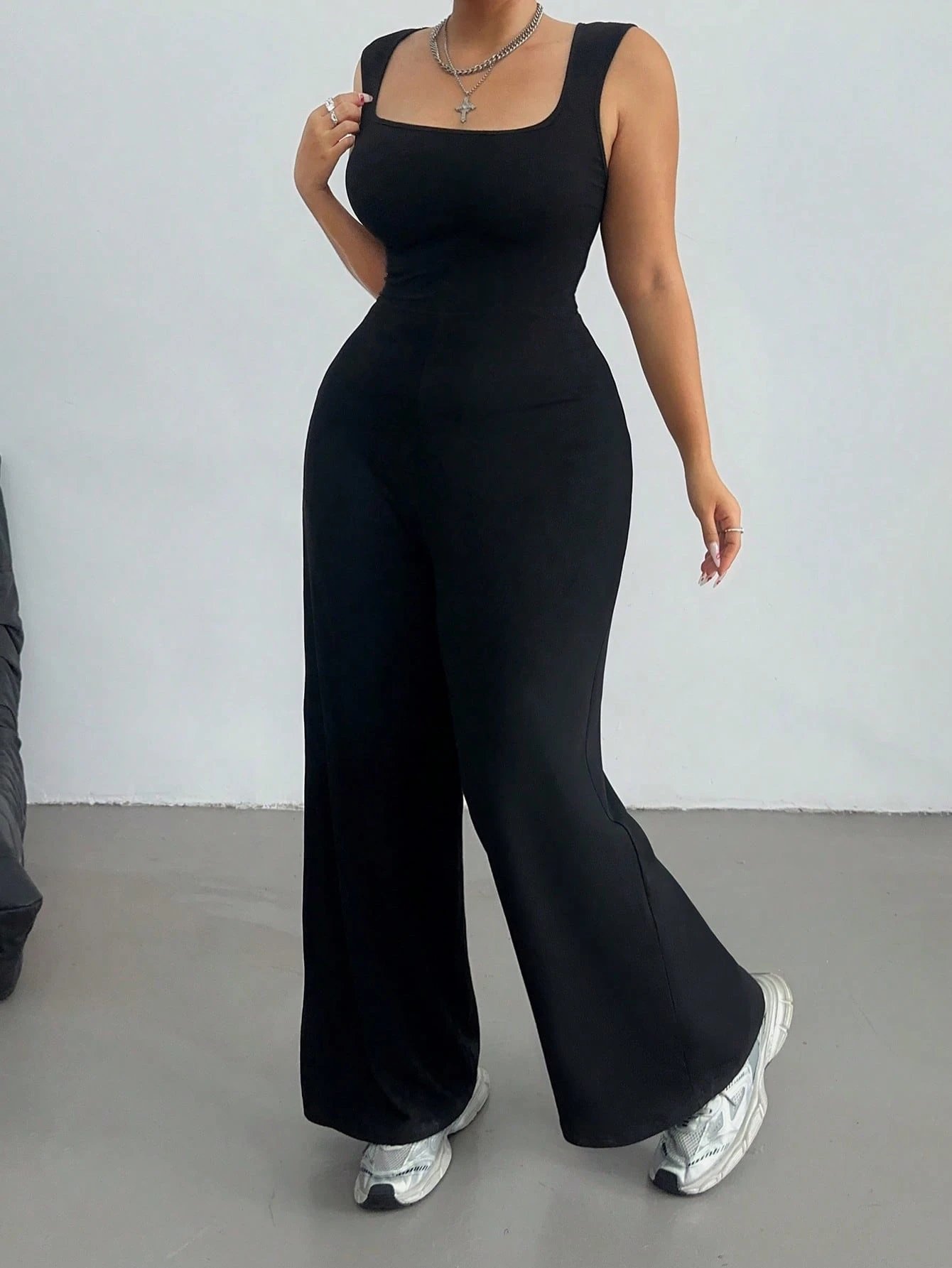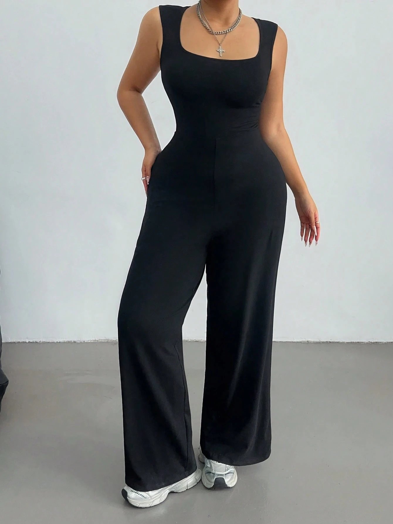 Combinaison ample décontractée à manches large, col carré et jambes larges