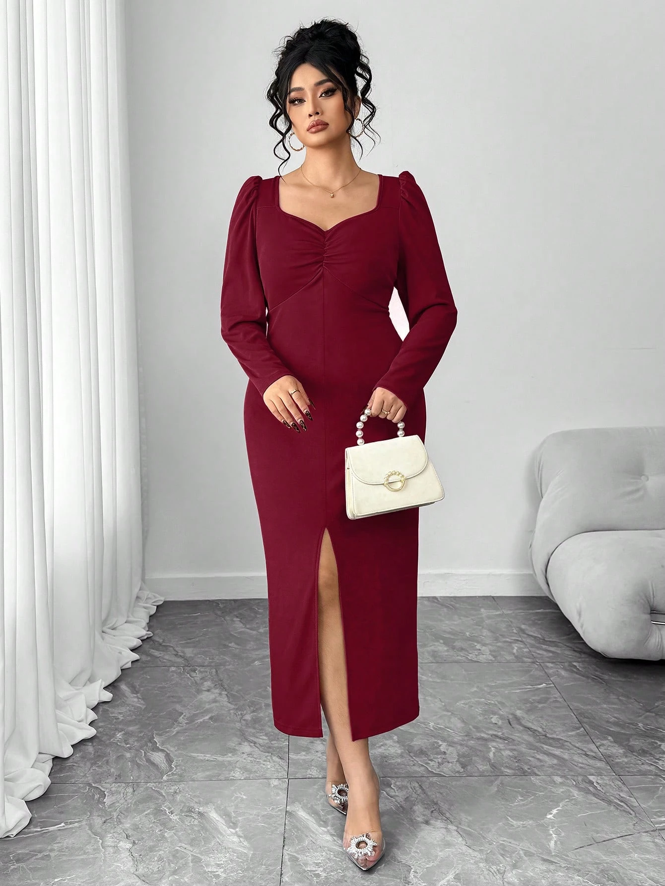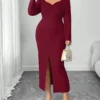 Elenzga Robe élégante à manches bouffantes fendue