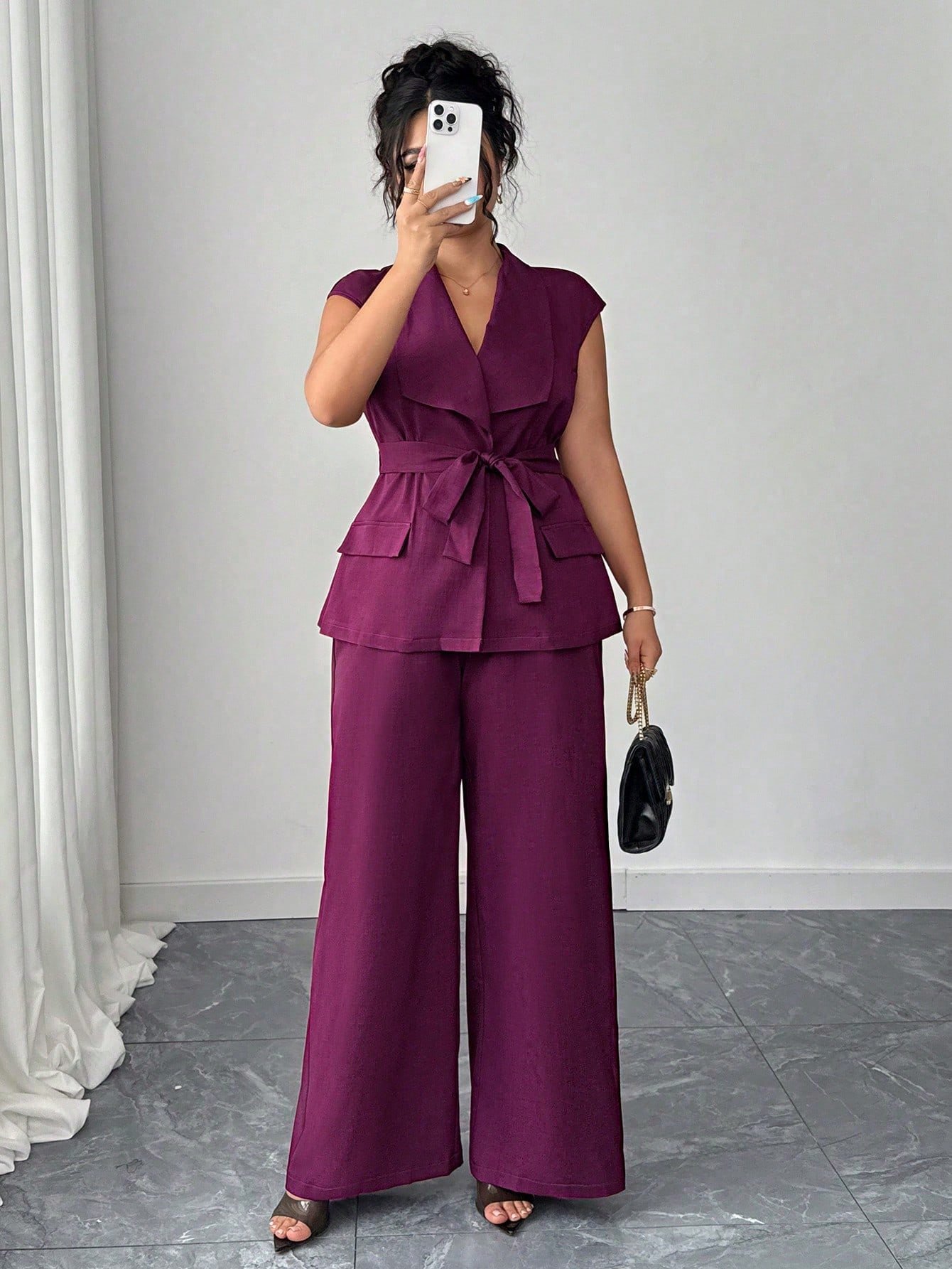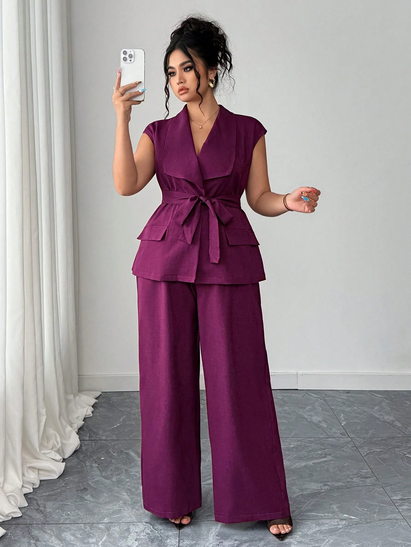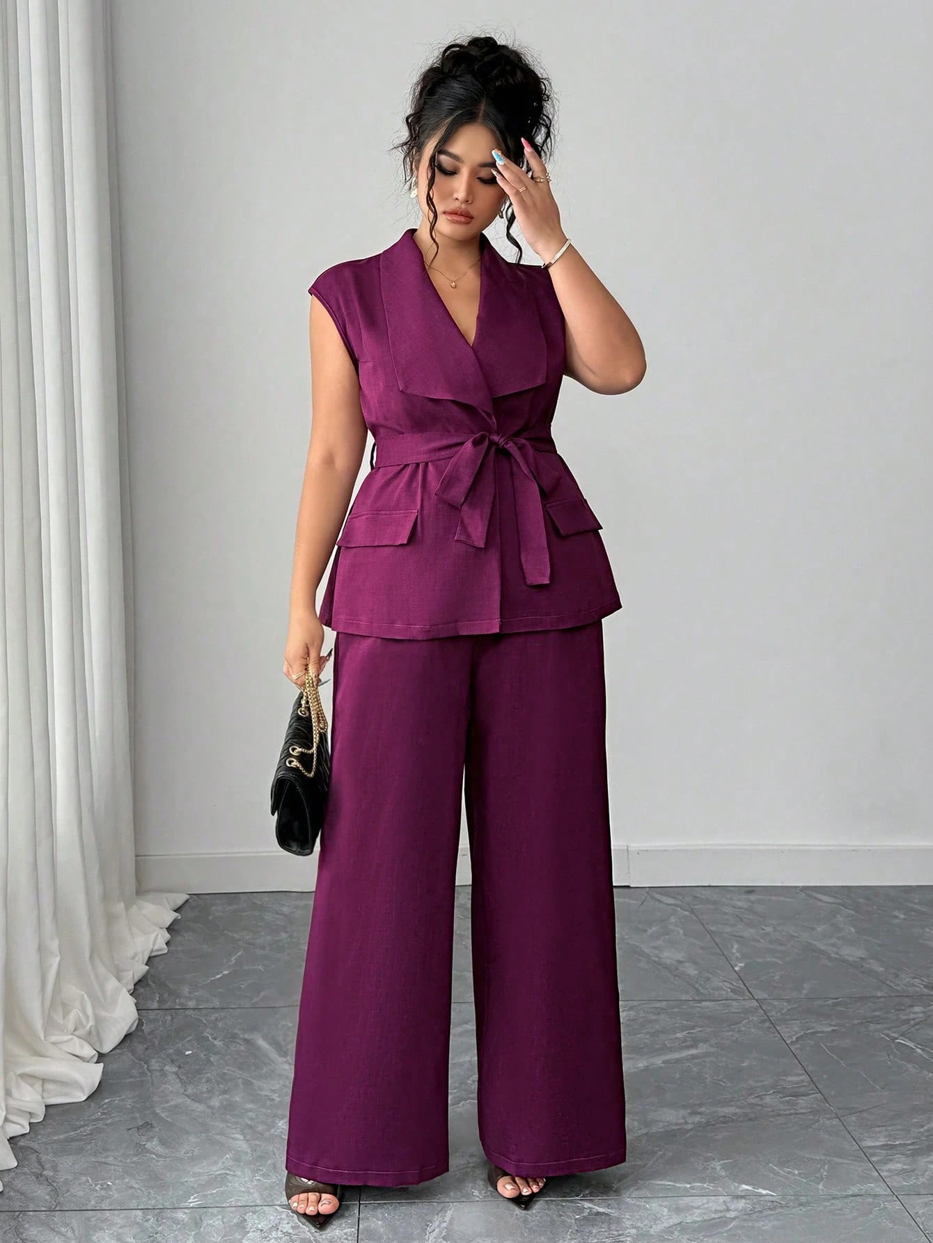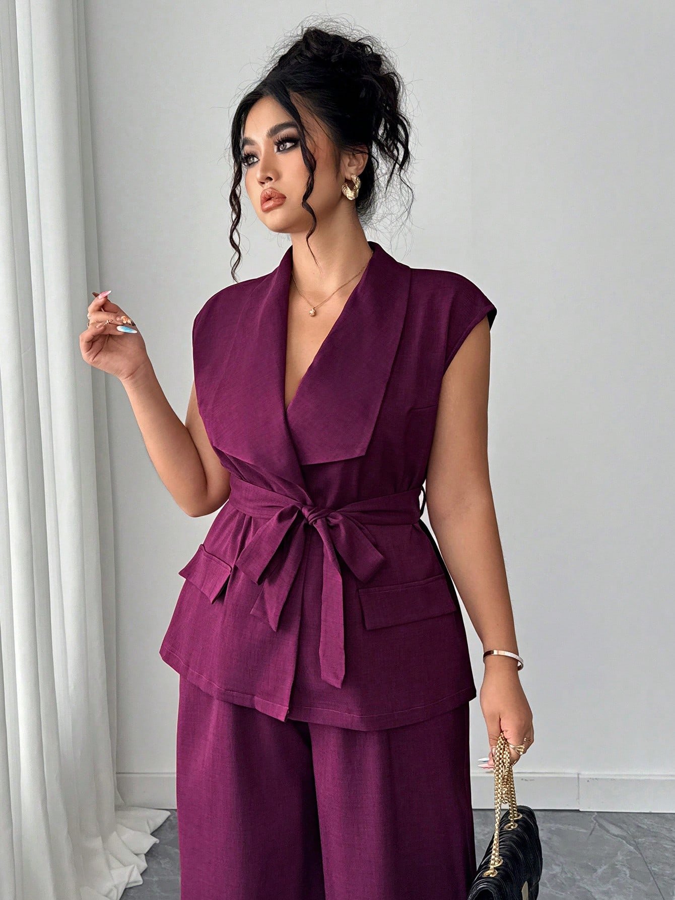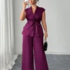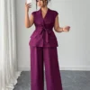 Ensemble 2 pieces élégant et chic avec blazer à col asymétrique,