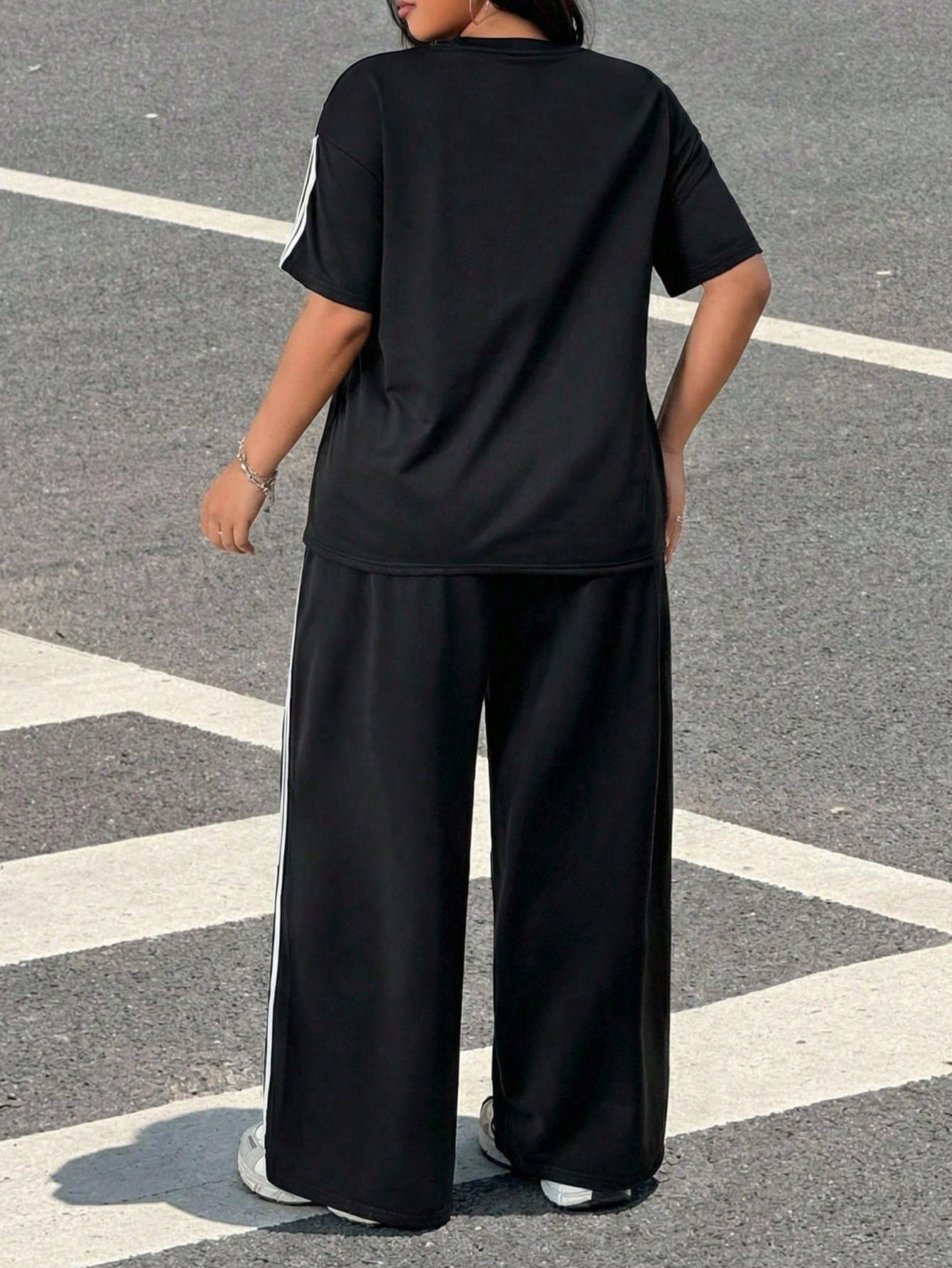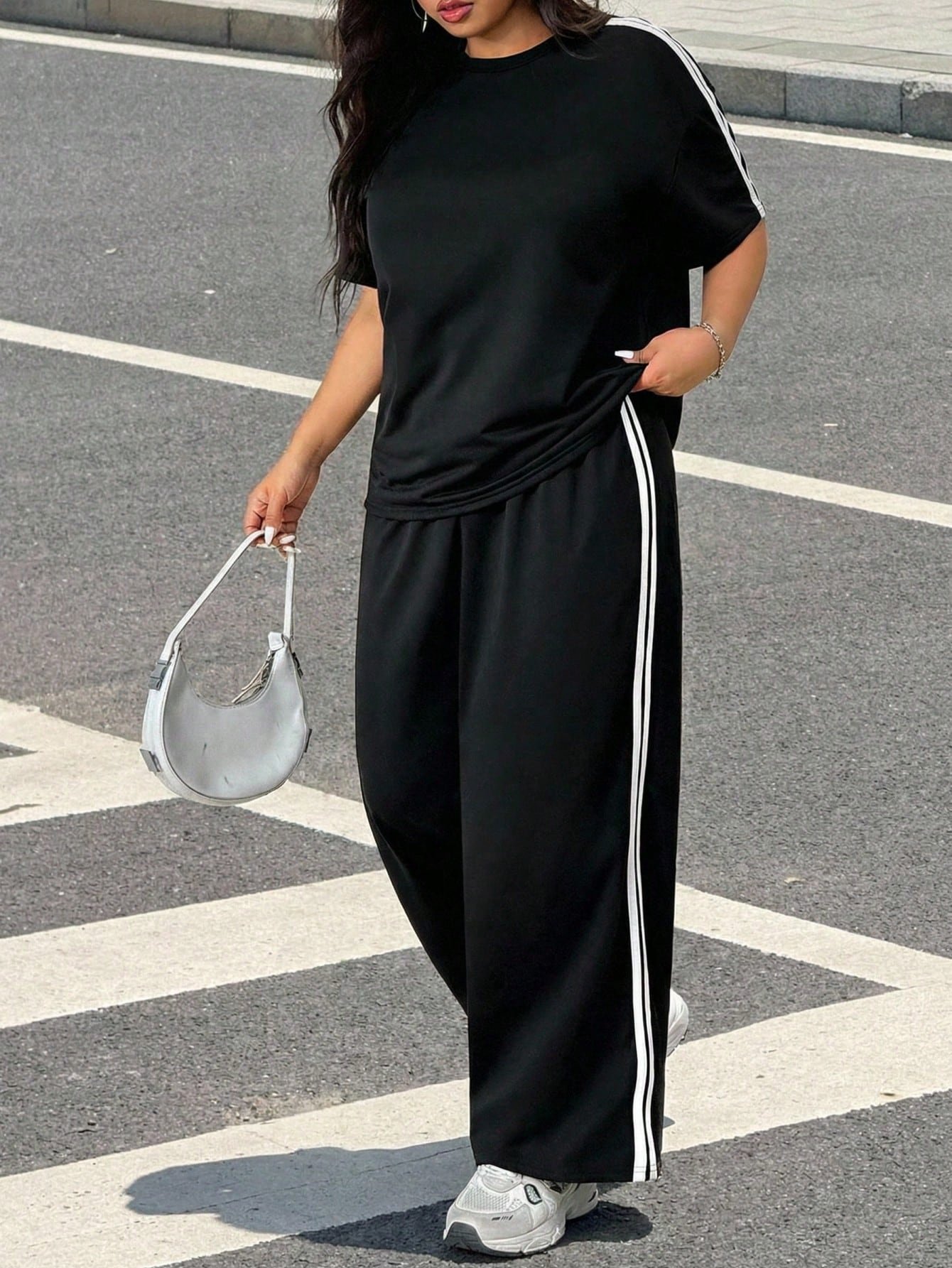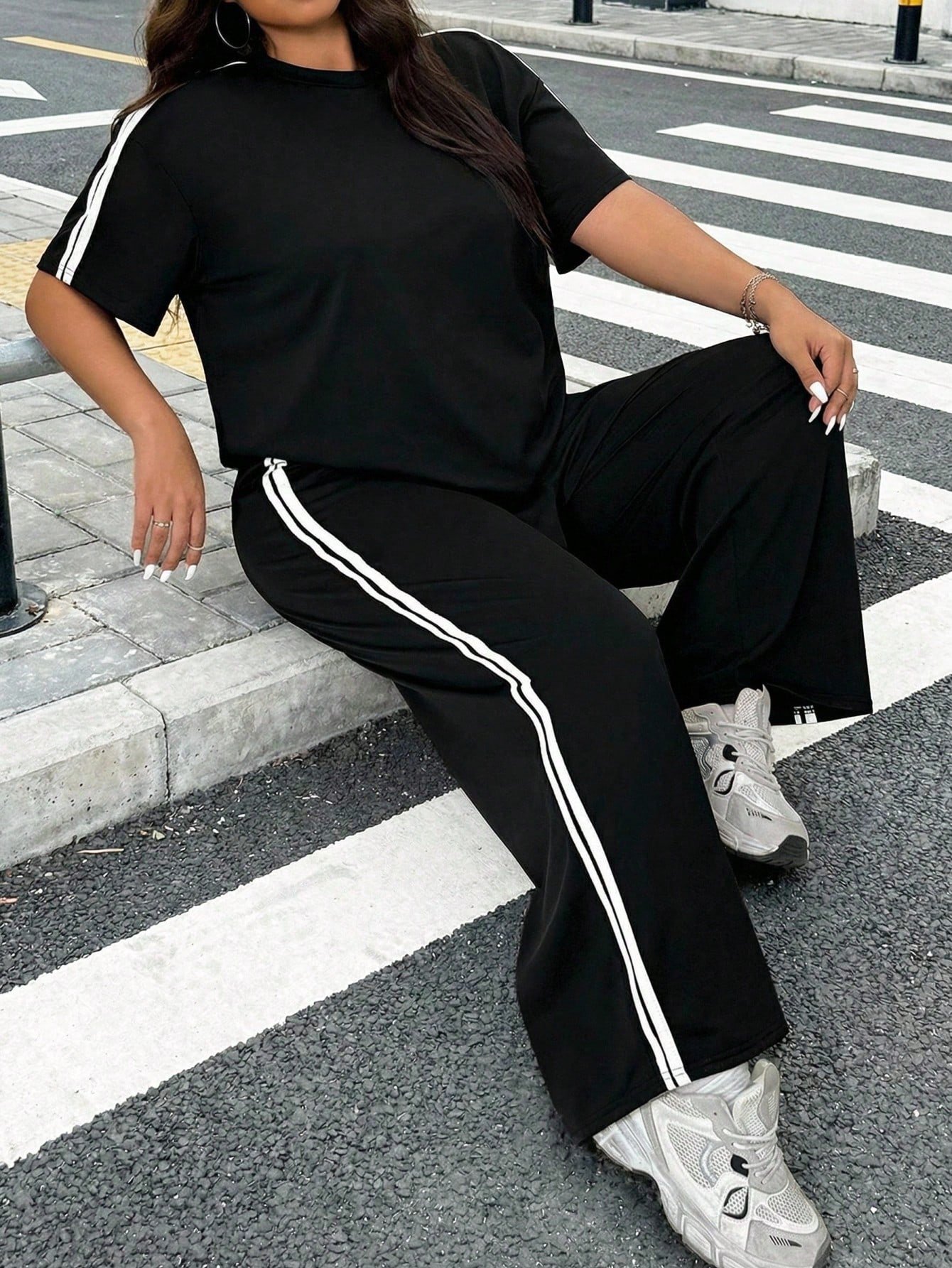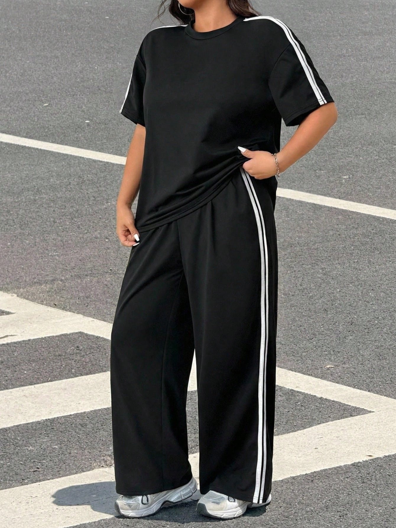 Ensemble t-shirt à manches courtes avec rayures contrastées sur les côtés