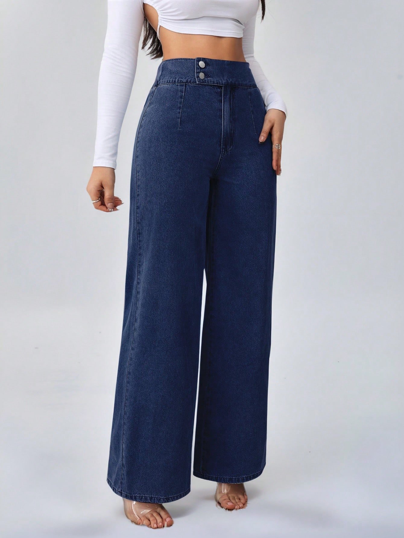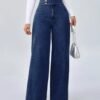 Jeans bleus amples Ă boutons