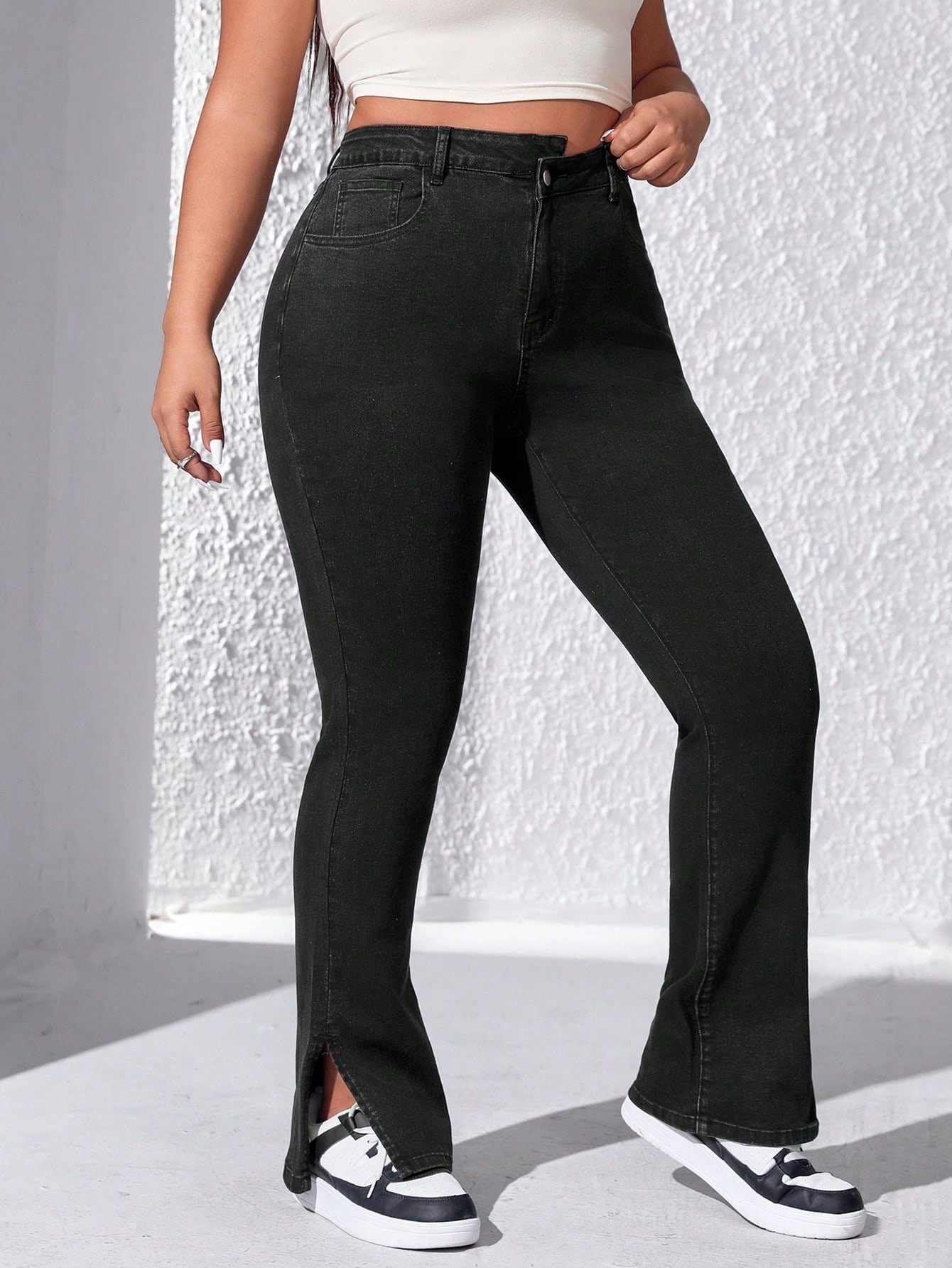 Jeans Taille Haute Grande Taille Avec Ourlet Ouvert