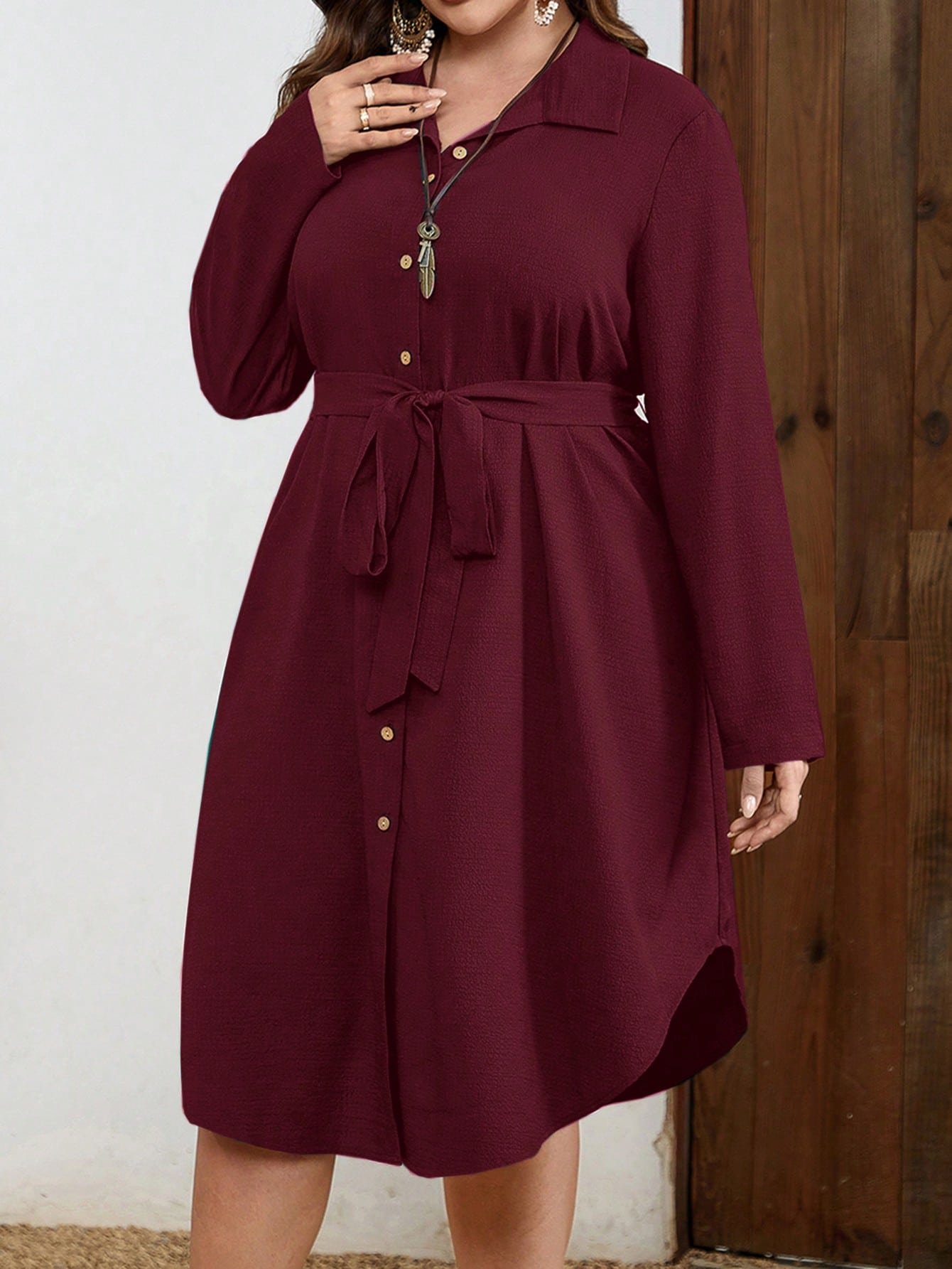 Robe à manches longues avec boutons devant et ourlet incurvé