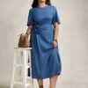 Robe de bureau décontractée à manches longues, avec col chemise, fermeture éclair partielle