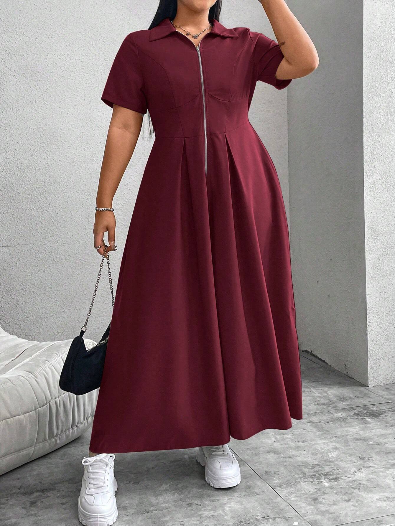 Robe ample de couleur unie avec fermeture éclair à l’avant, manches courtes