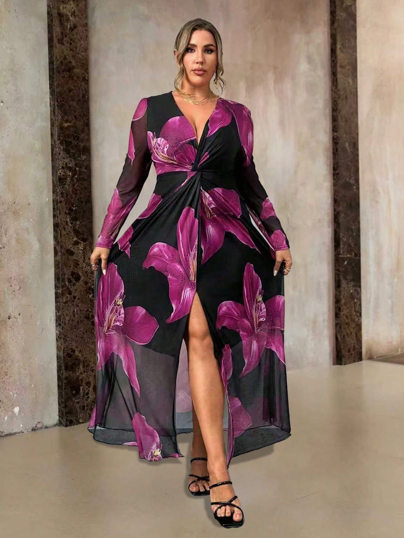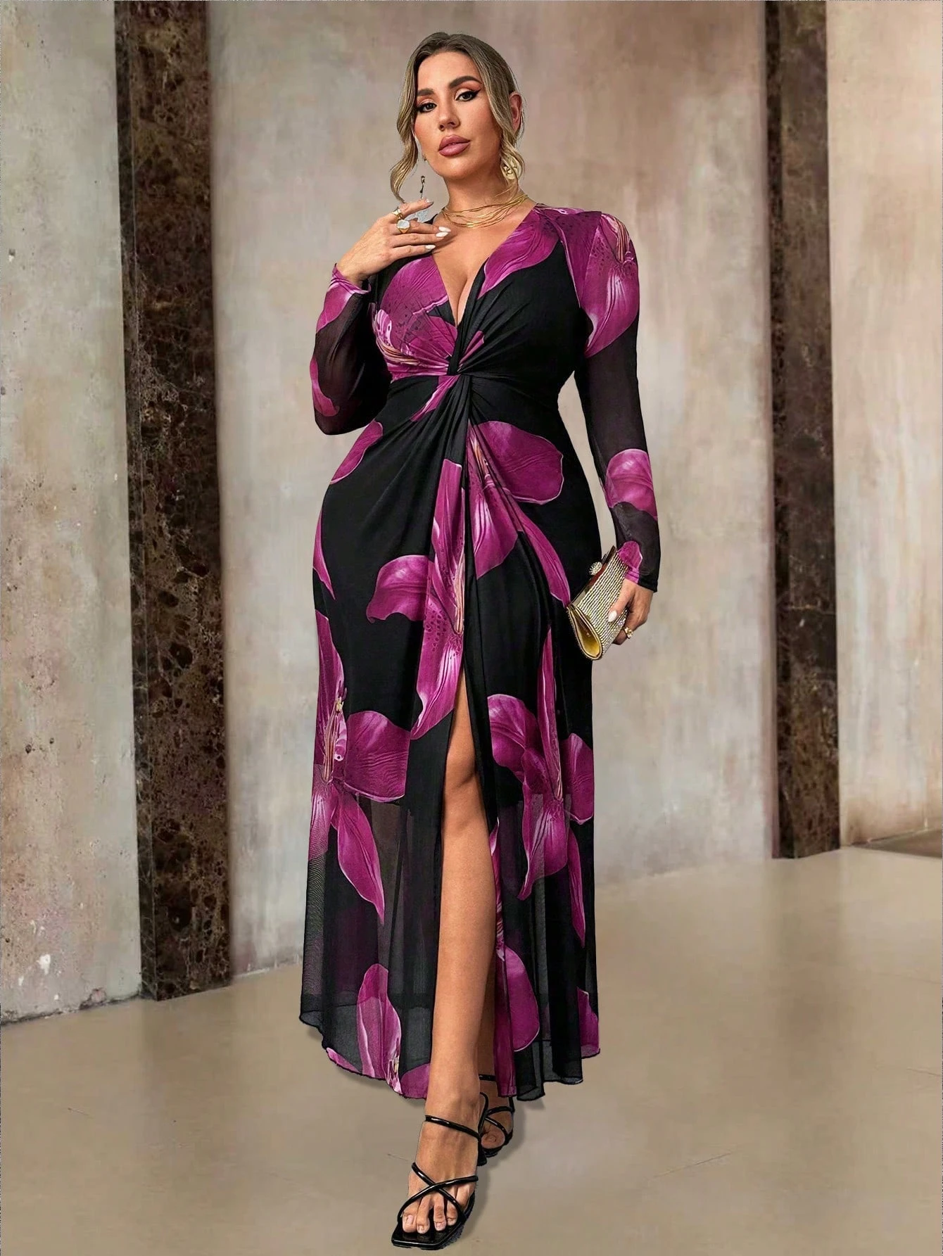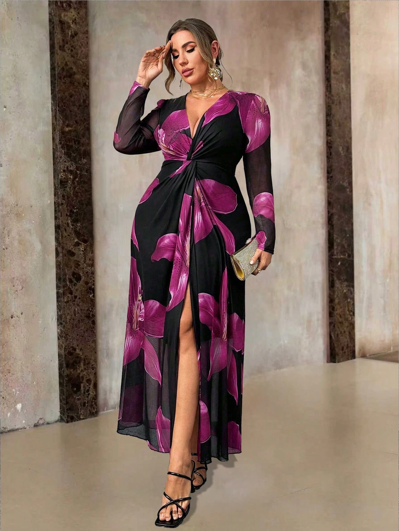 Robe avec imprimé floral et design torsadé
