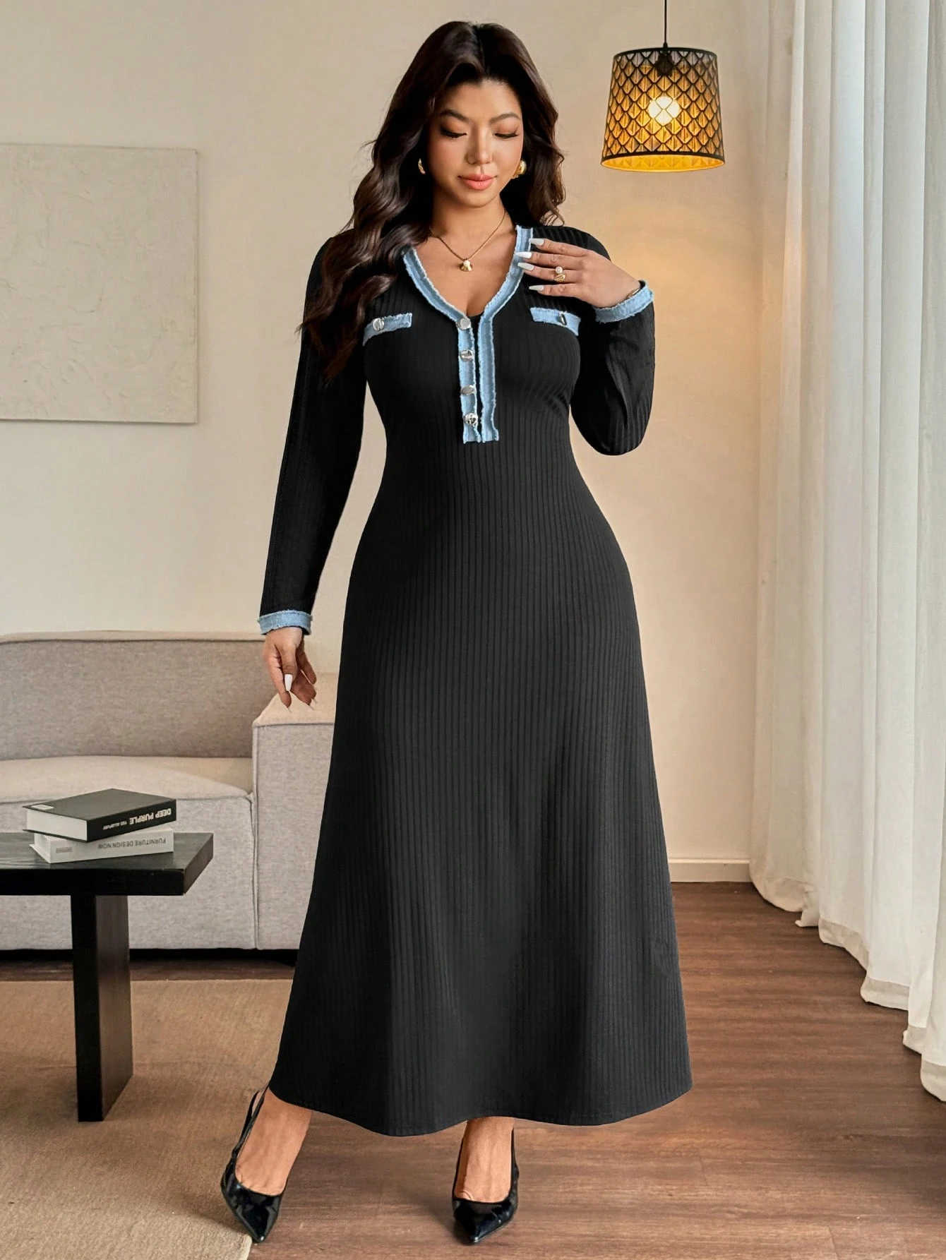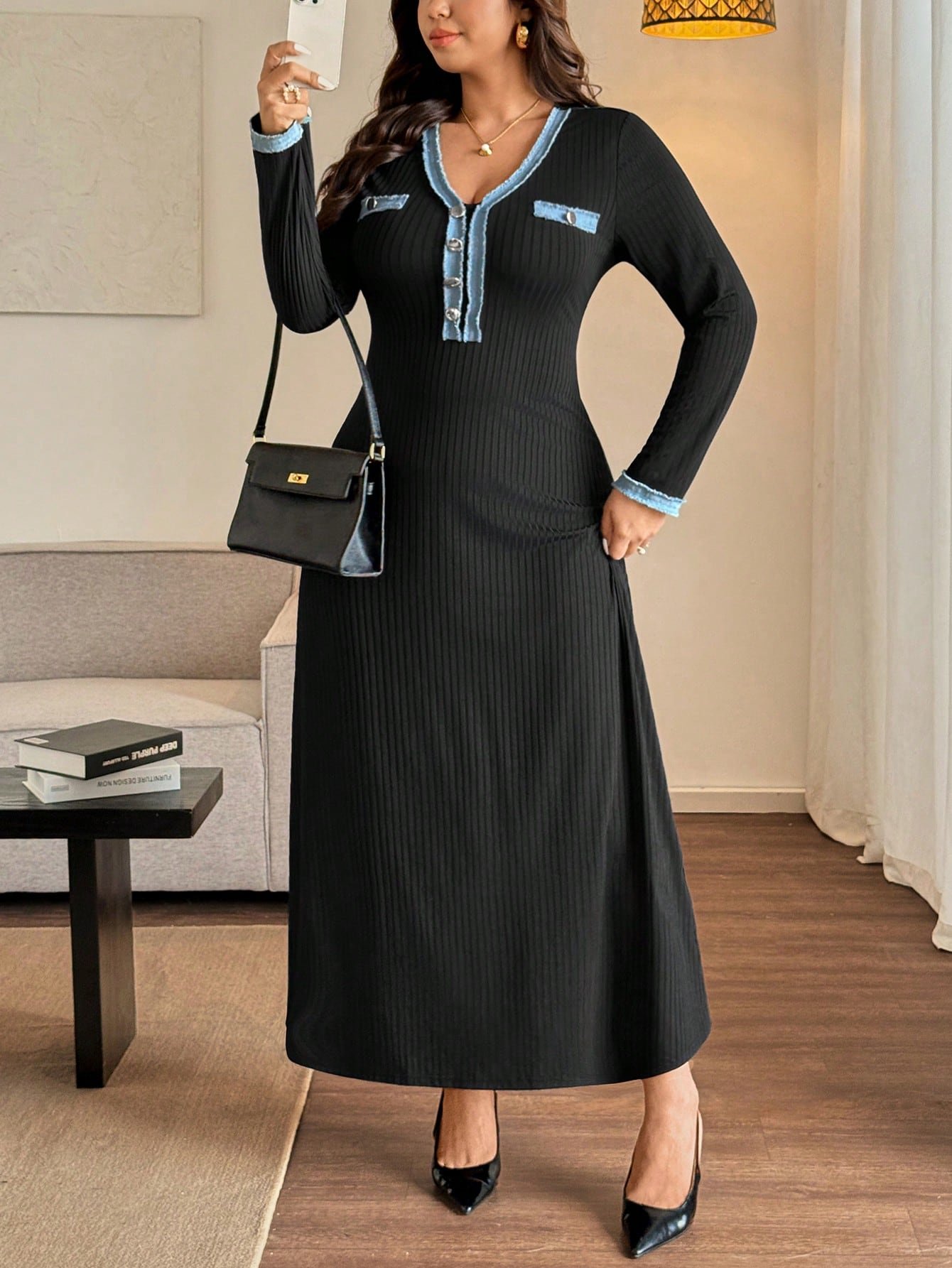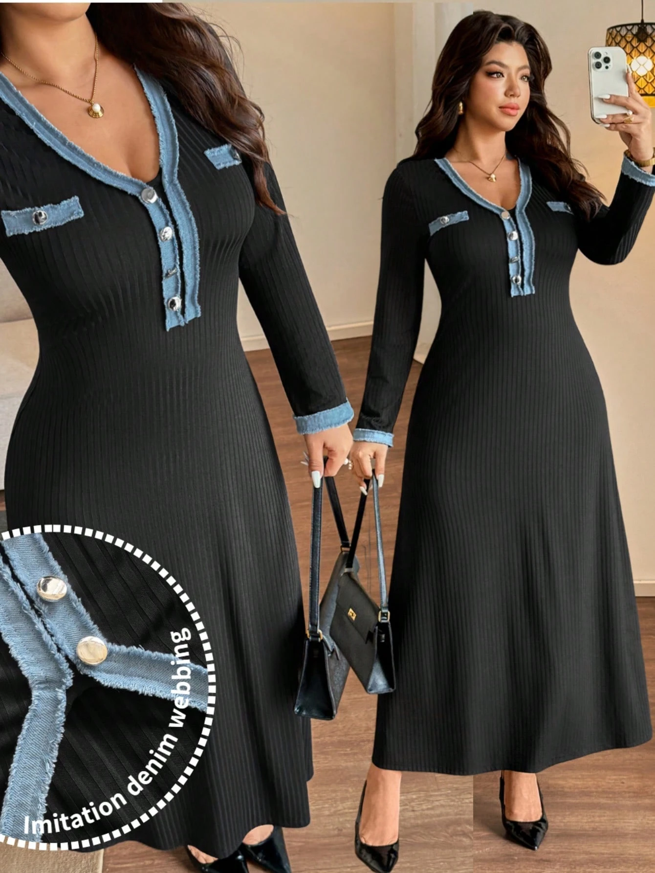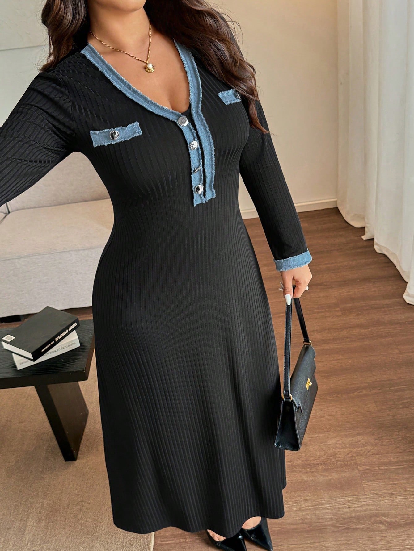 Robe casual Ă patchwork et boutons