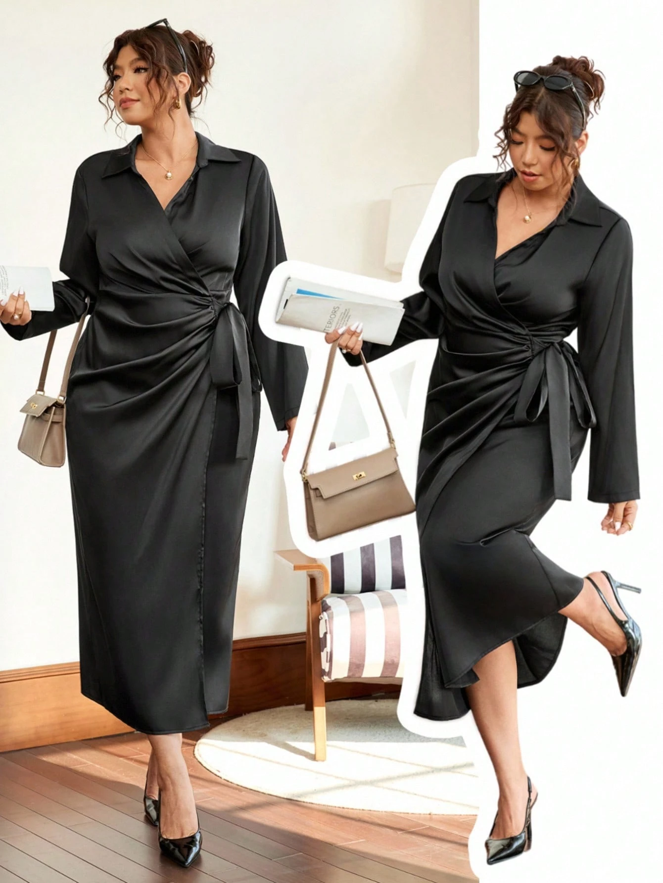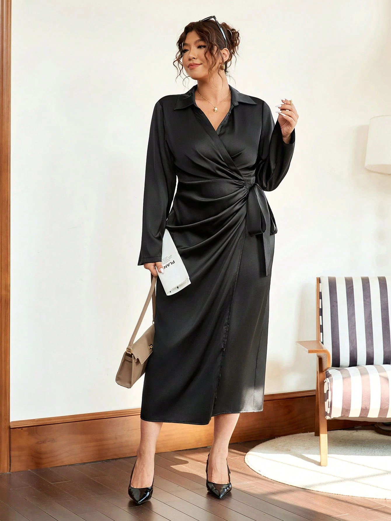 Robe chemise en satin à bretelles croisées