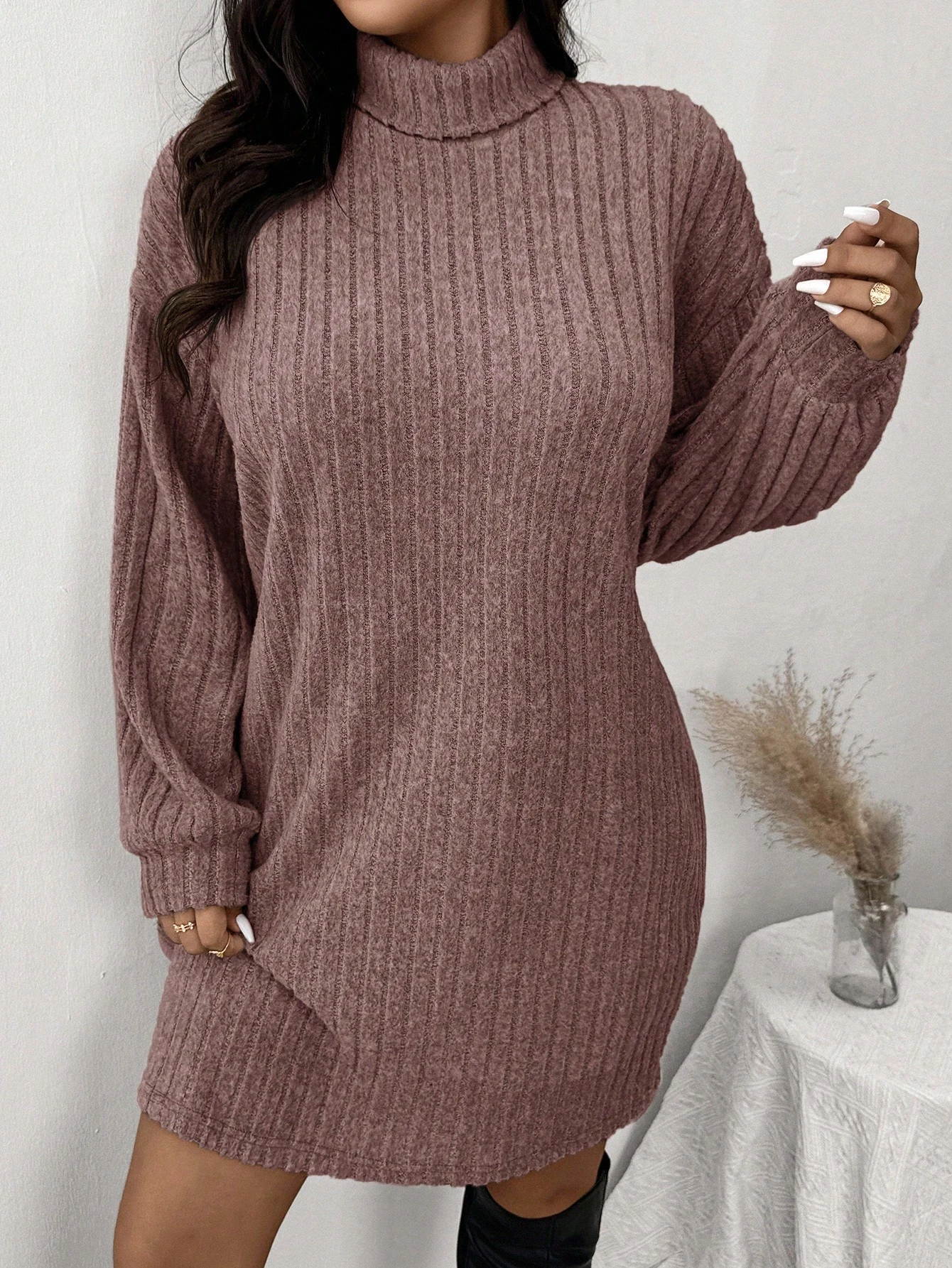 Robe côtelée à col roulé