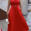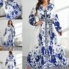 Robe élégante avec blocs de couleurs, manches lanternes à col en V profond et ourlet sirène