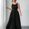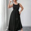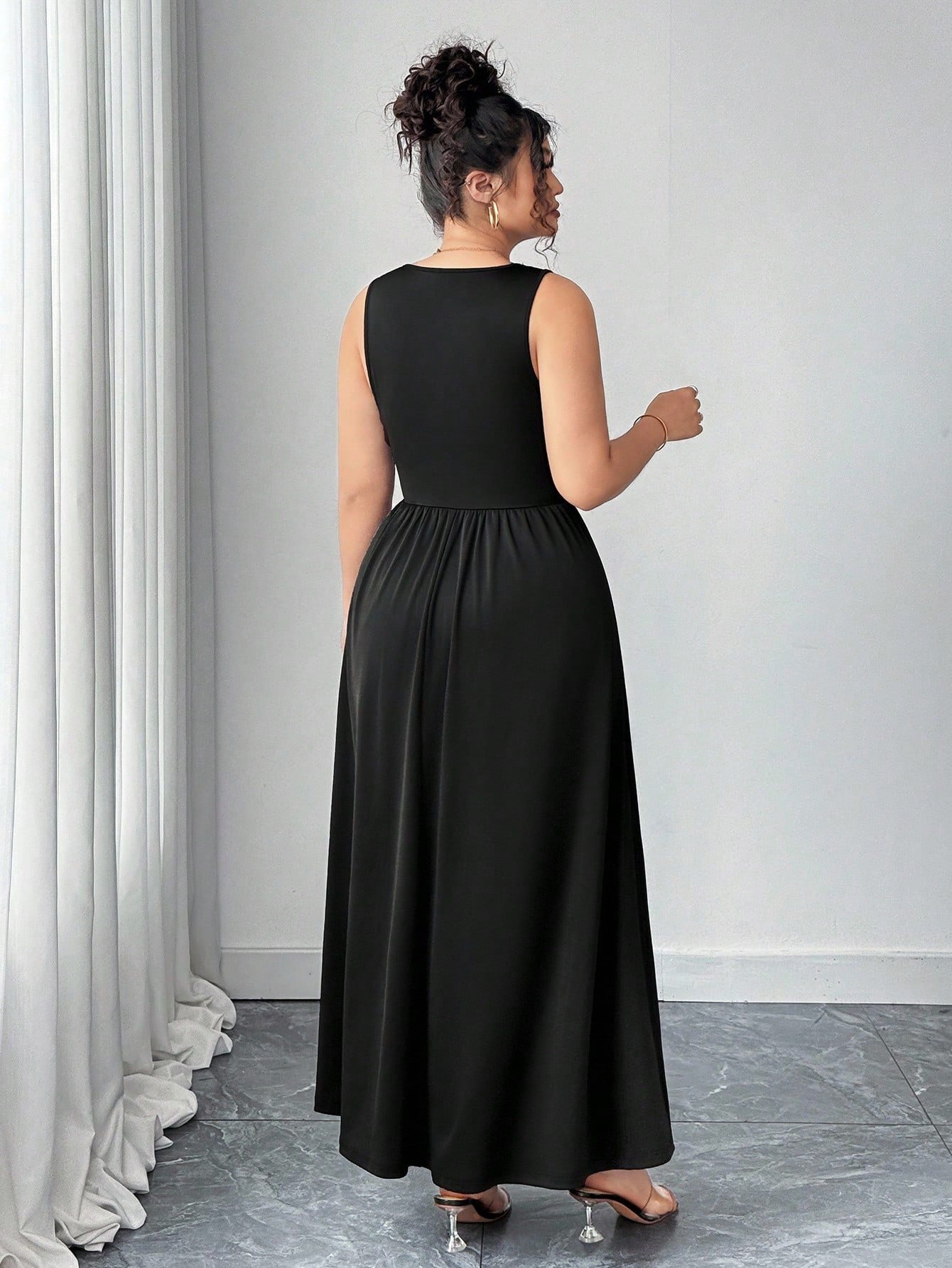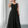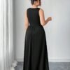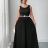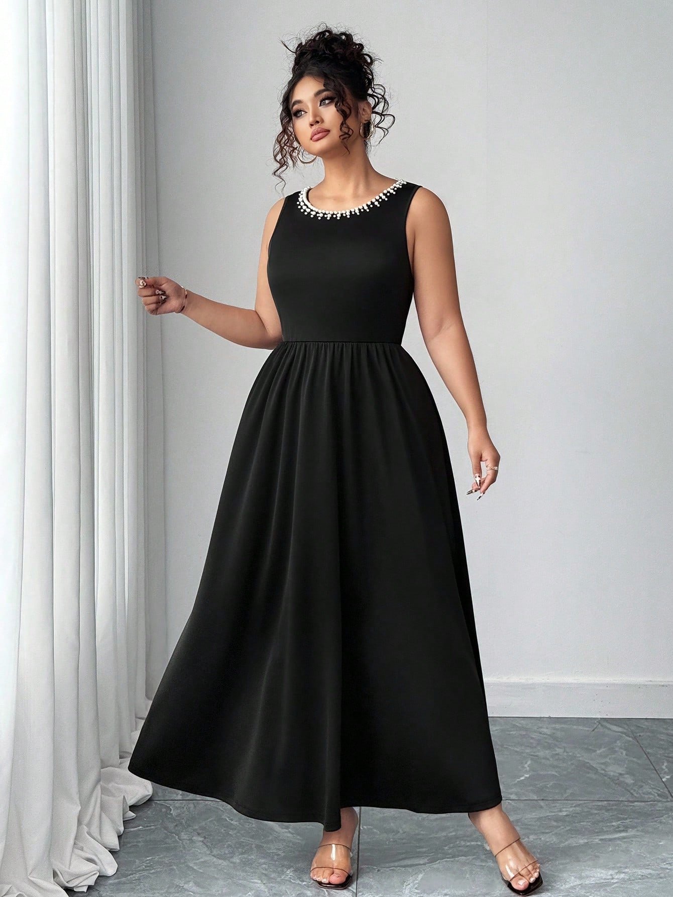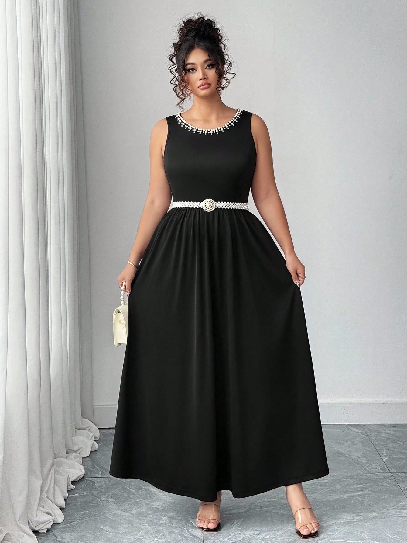 Robe élégante noire en tricot moulant avec garniture de perles sans manches