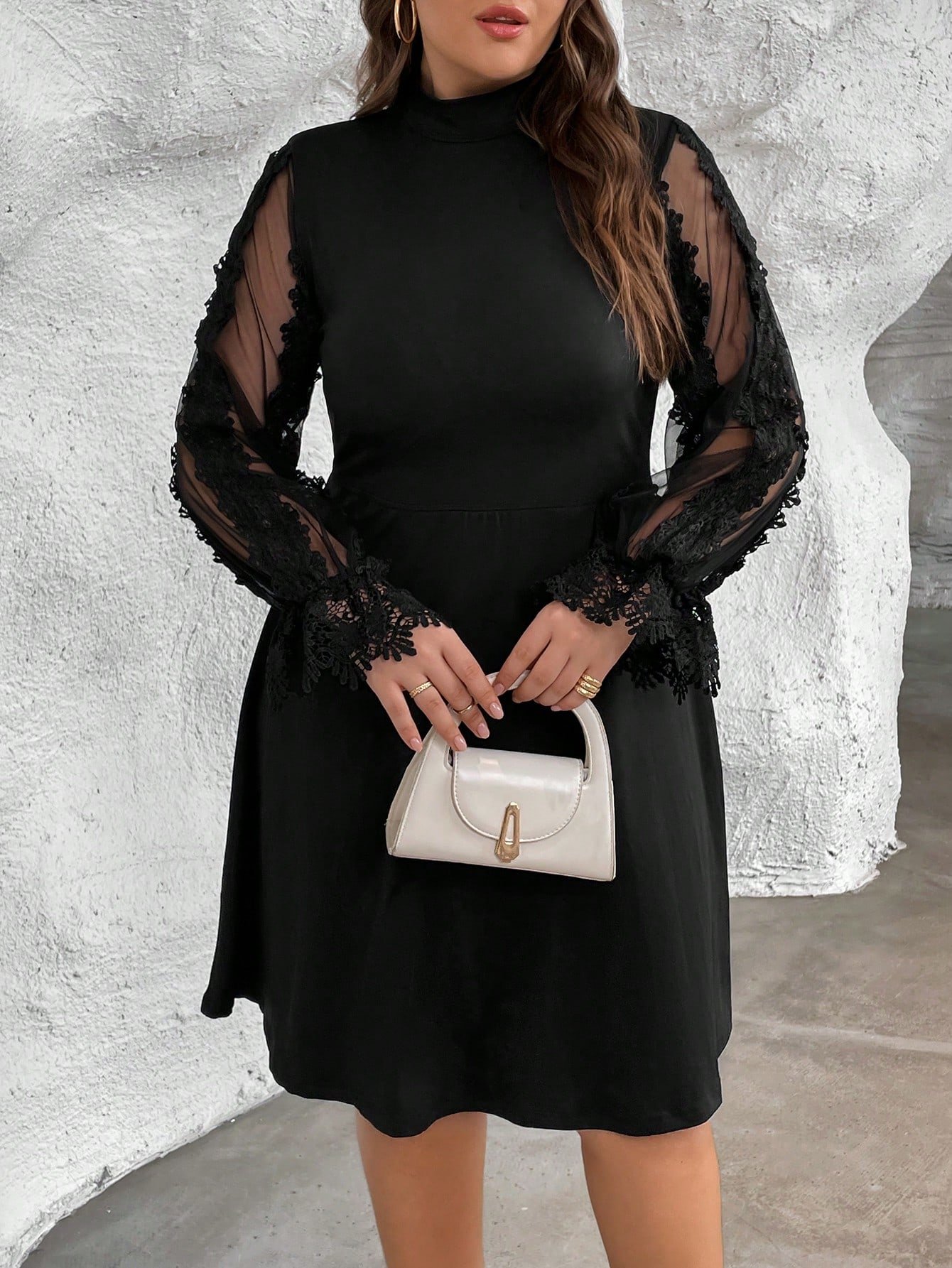 Robe En Dentelle Ă Col Montant (Sans Ceinture)