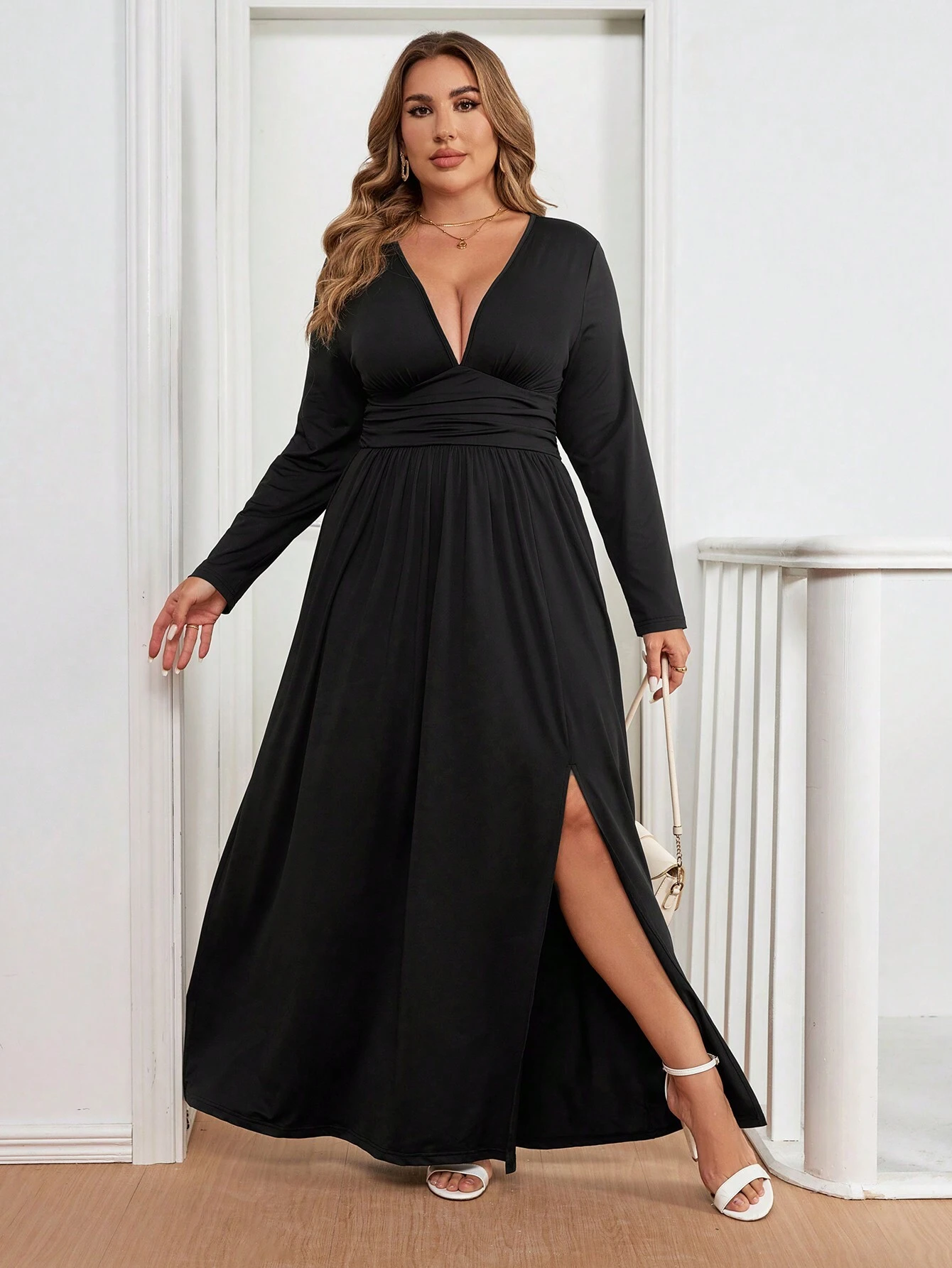 Robe de bureau décontractée à manches longues, avec col chemise, fermeture éclair partielle