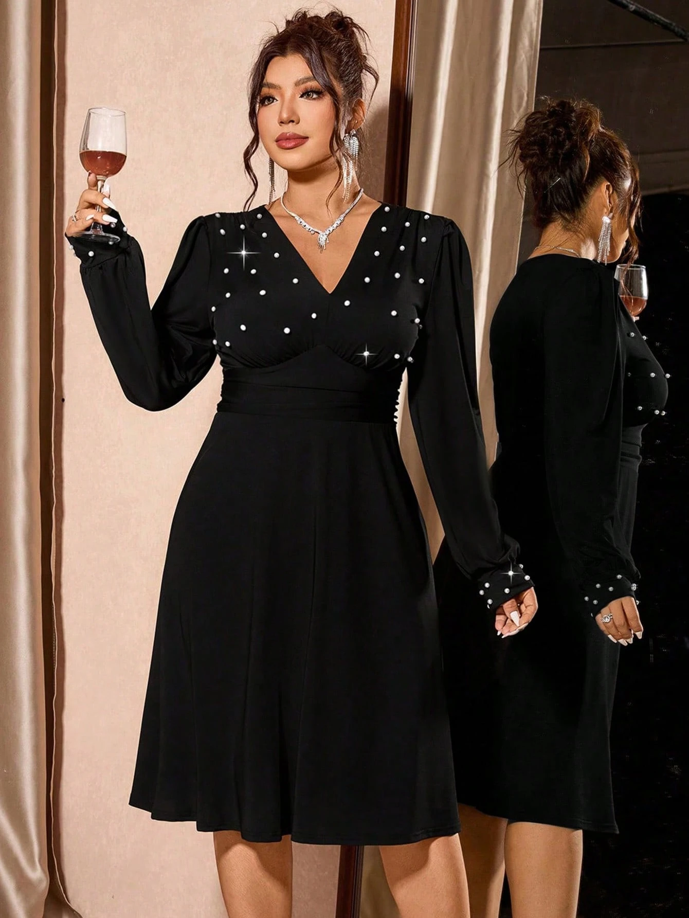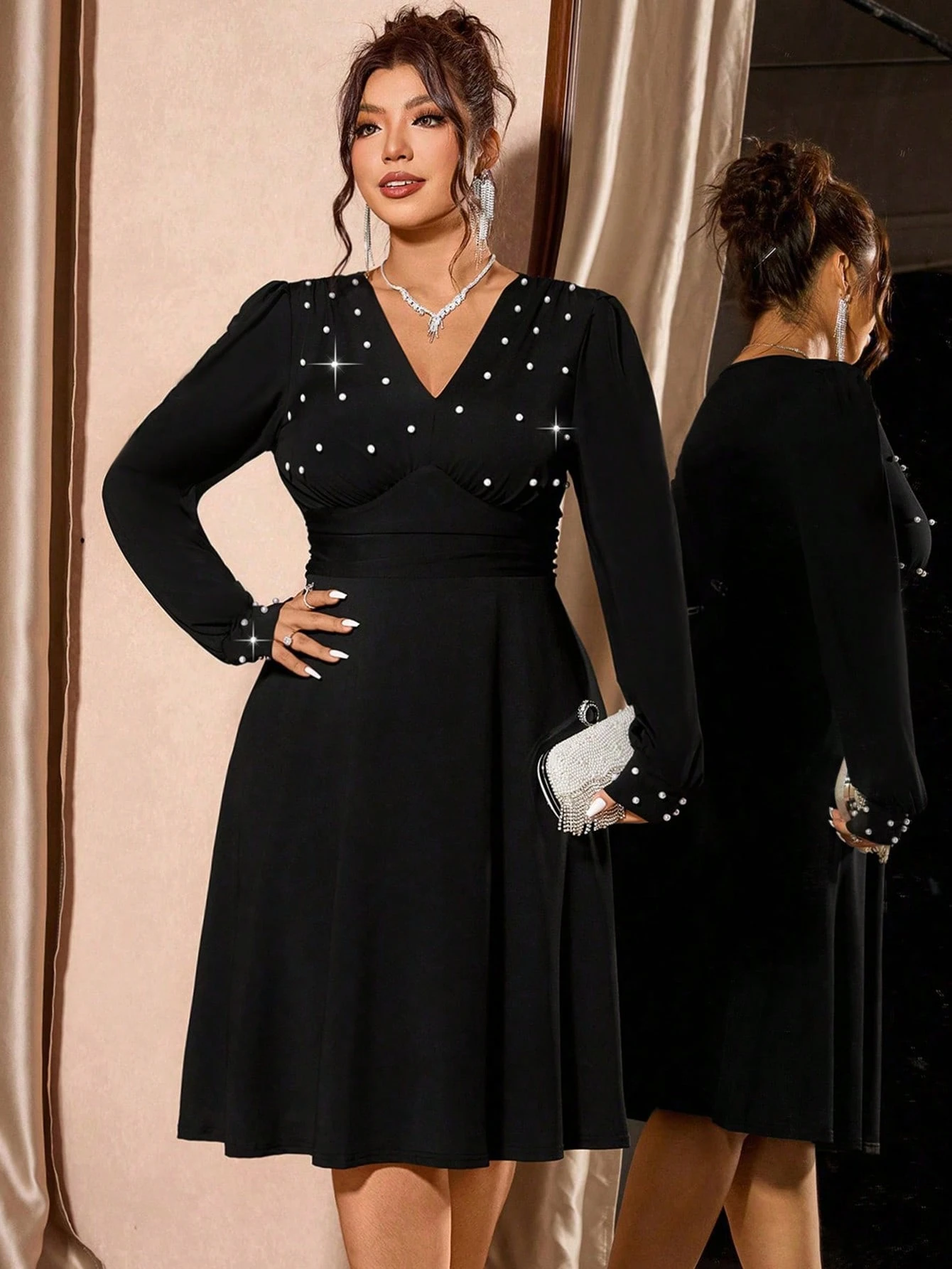 Robe longue Ă manches longues,
