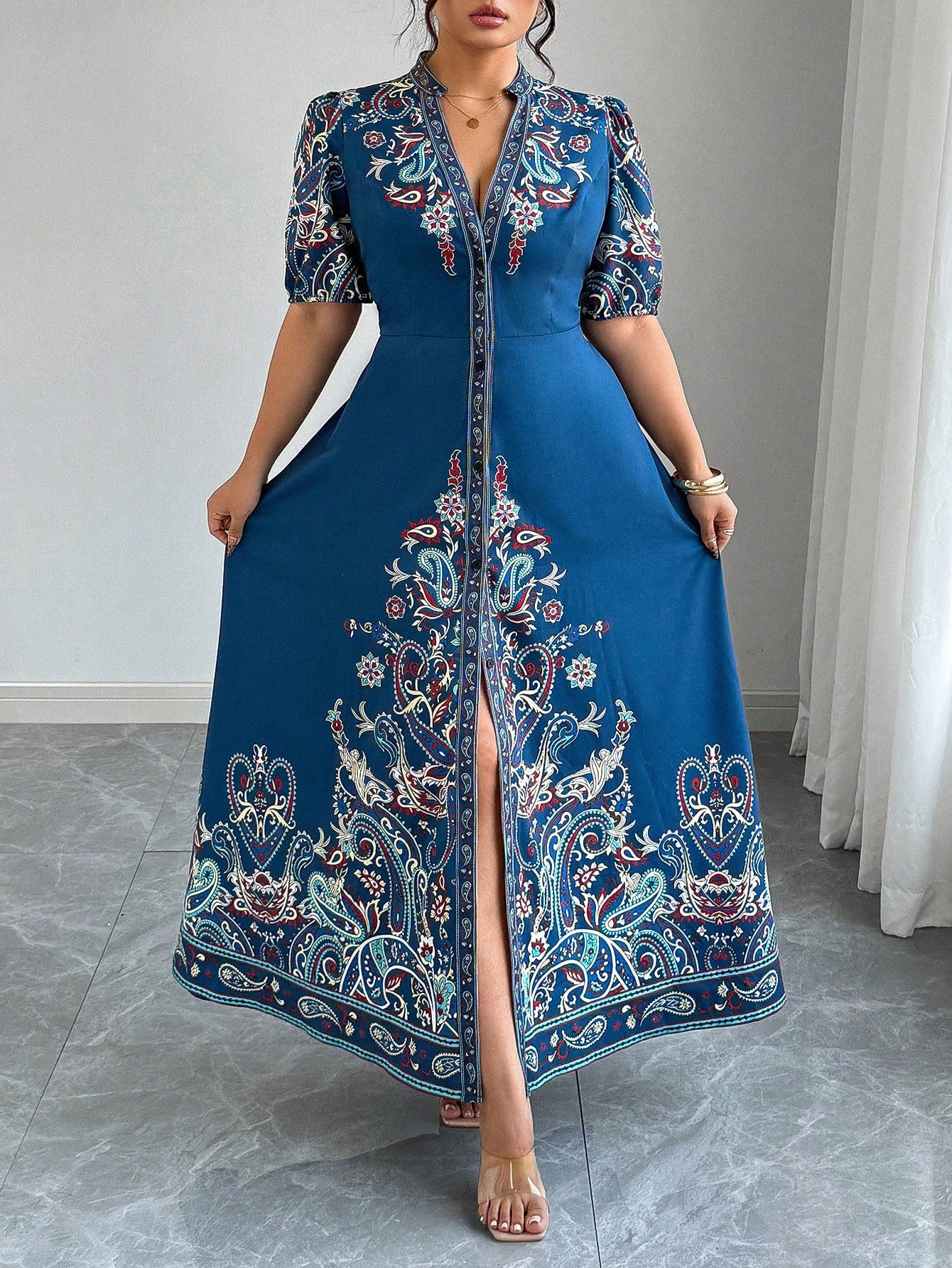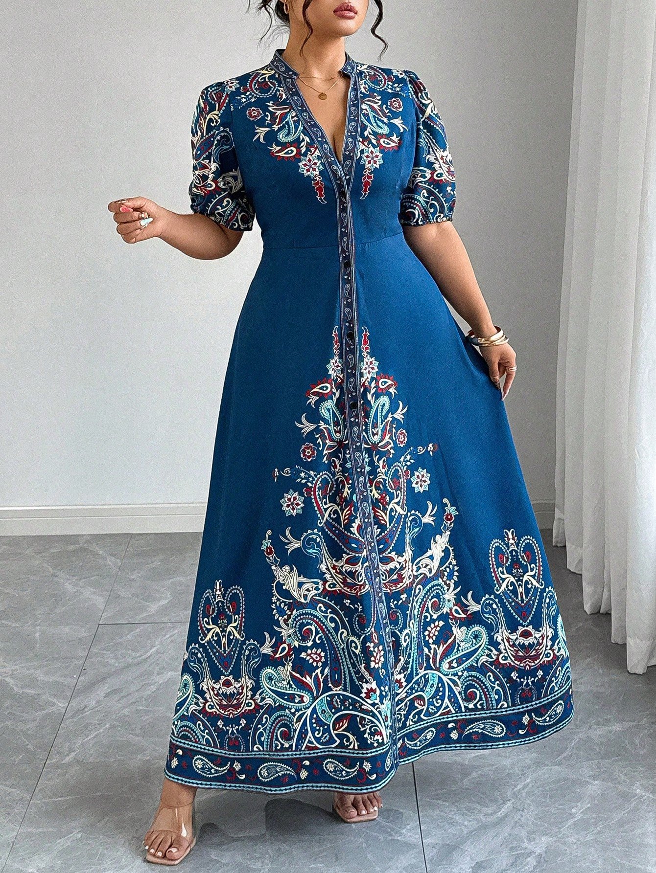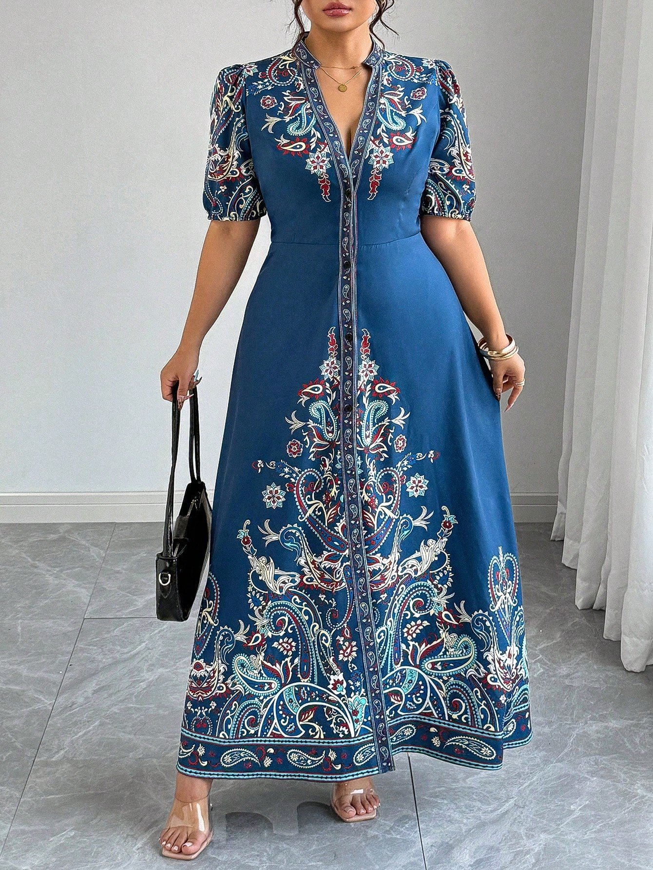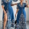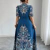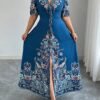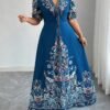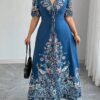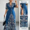 Robe longue décontracté/de villégiature style bohème imprimée à col en V, manches courtes