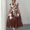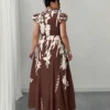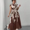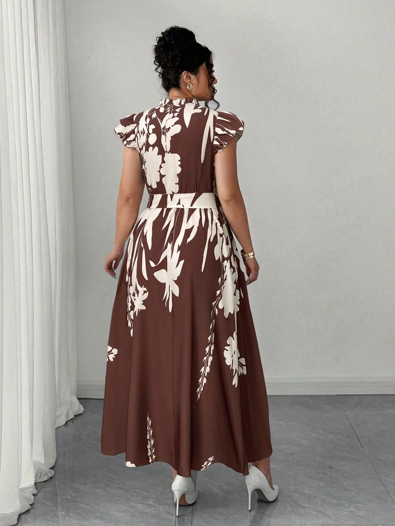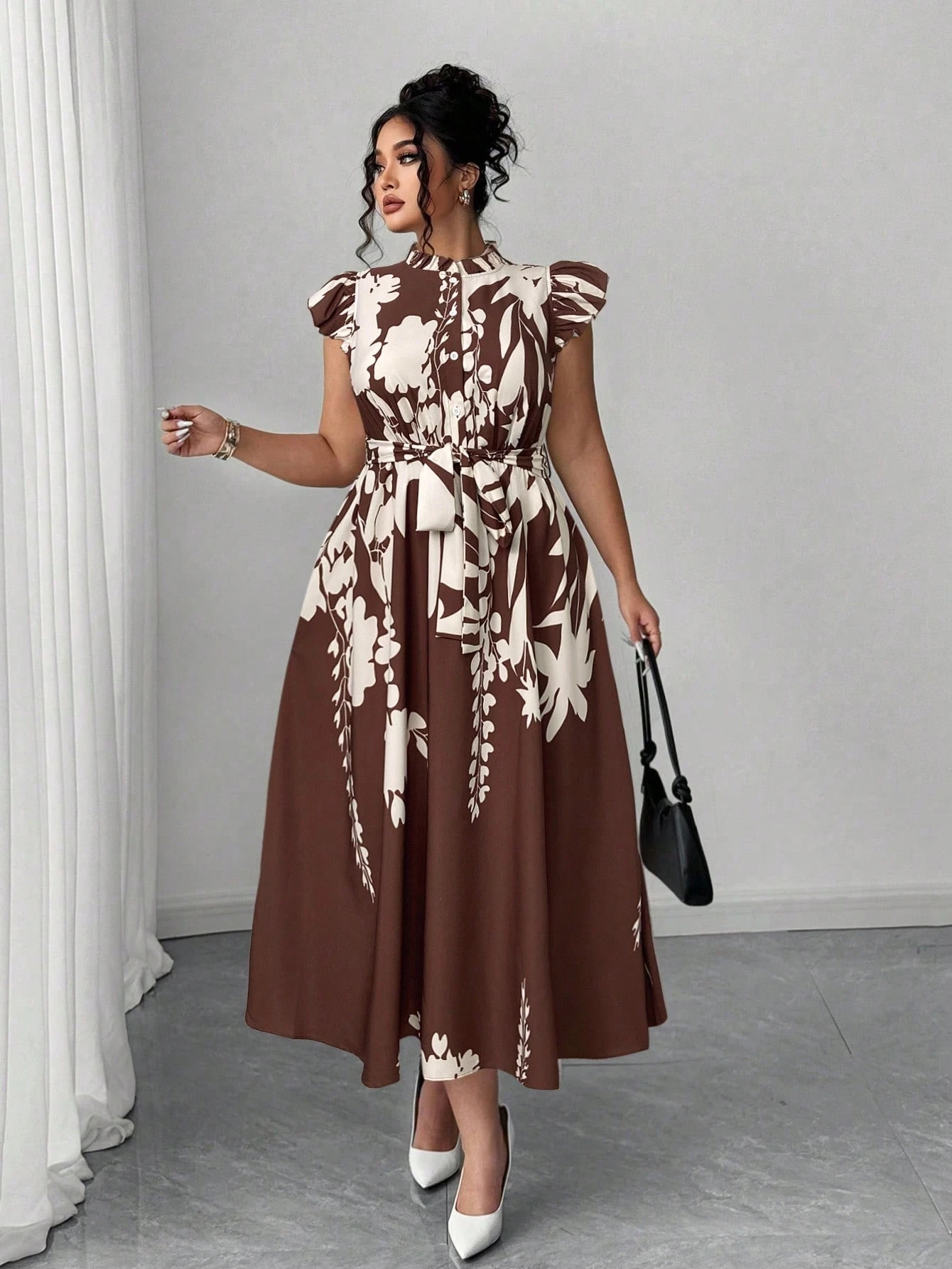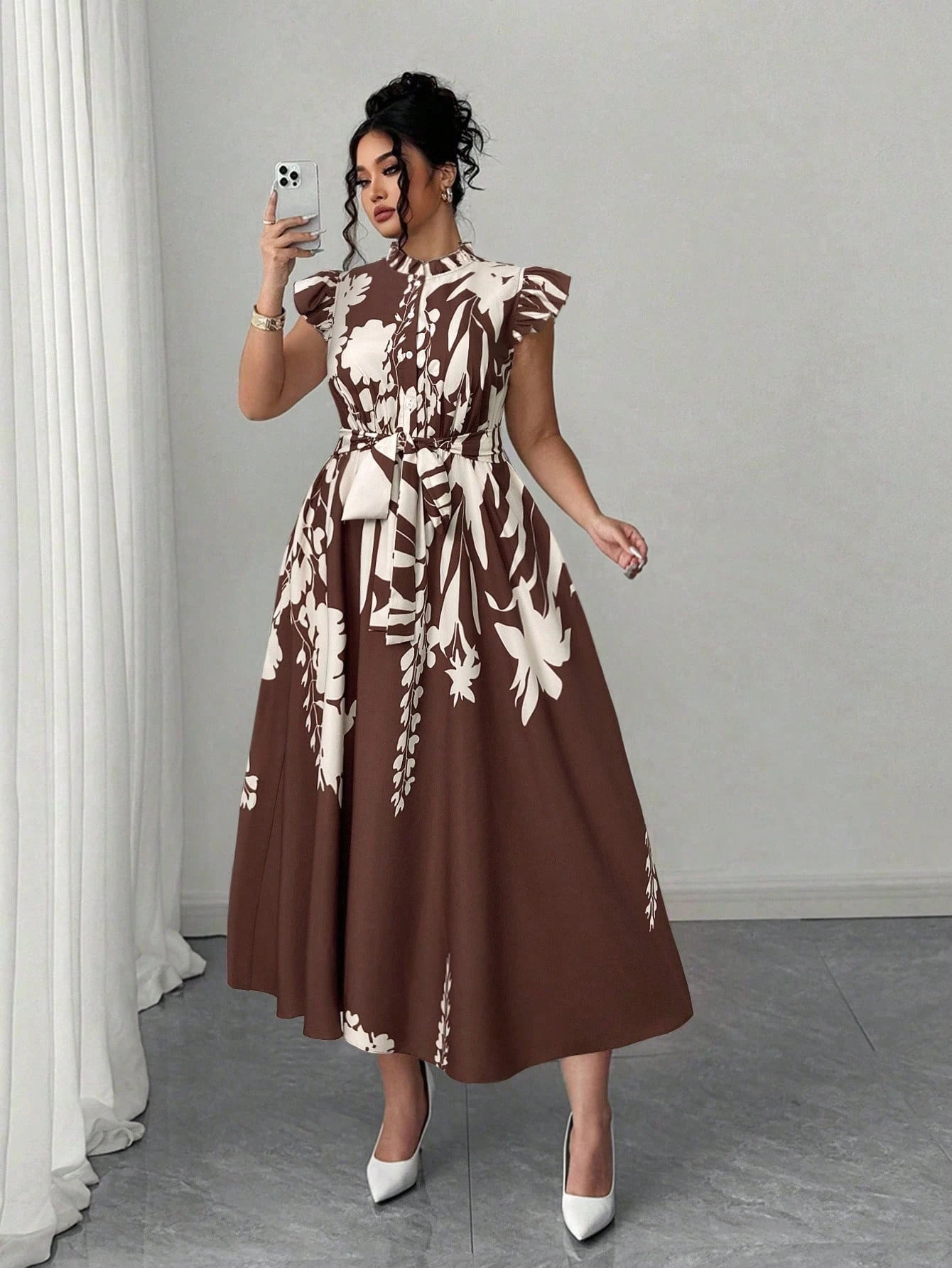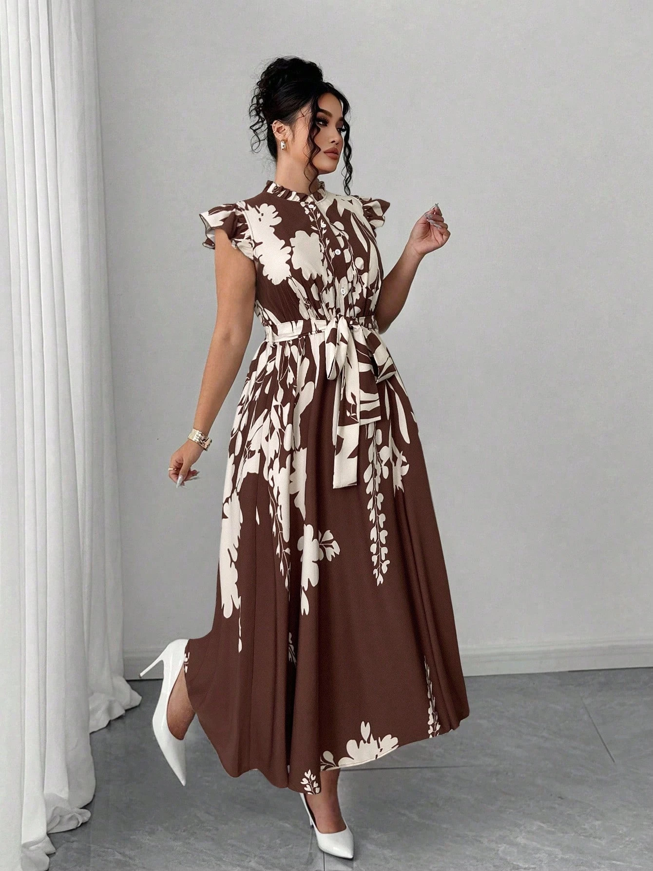 Robe longue élégante à imprimé floral avec volants, coupe flatteuse